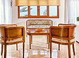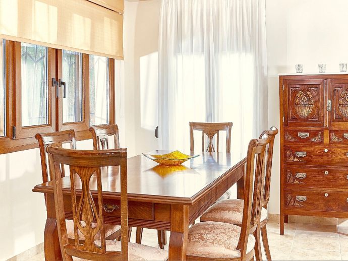 Lower Floor with direct access to the gardens, additional fully equipped kitchen, dining area, sitting area. Double bedroom, A/C. Twin bedroom, A/C, exit to garden. Family shower room. Utility room with washing machine.