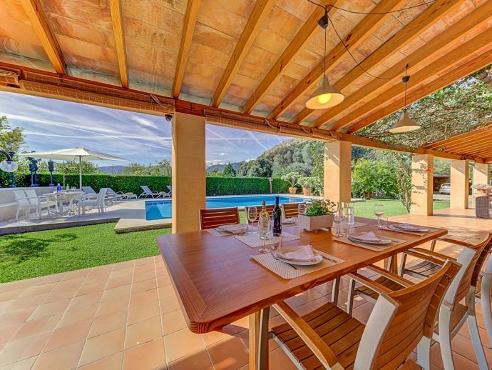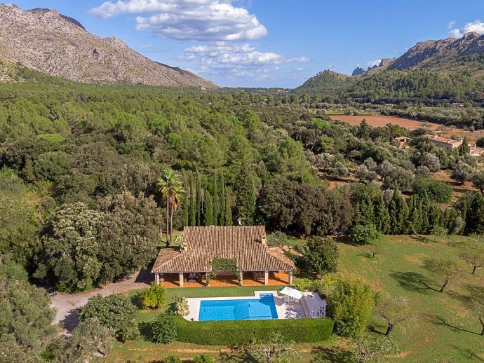 Villa Florencia stands proudly at the end of a quiet cul-de-sac, in the sought after area of La Font, the most exclusive residential area of Pollenca and just a short drive (10 minutes) from the sandy beaches of Port de Pollenca. Pollenca is an ancient town with attractive narrow streets and an impressive main square, a place abundant with art galleries, first-class restaurants, tapas bars and cafes plus several historical places of interest. Port de Pollenca was once a simple fishing port, now it remains very attractive and one of the most popular resorts on the island. The picturesque town is full of Mallorcan charm and is home to long stretches of golden sand, a delightful promenade lined by pine and palm trees with a splendid array of cafes and restaurants and a chic marina. Cala San Vicente is a beautiful secluded resort village with a splendid beach and three small hidden bays enclosed by the imposing backdrop of the Tramuntana Mountains. These three bays provide fine sand and pebble beaches and crystal clear waters.