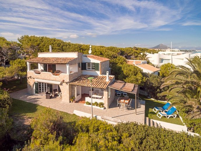 Villa Maribel is a charming holiday home in a unique and sought after location, just a few steps from the sandy beach of Playa de Muro in the magnificent Bay of Alcudia, This detached property offers fantastic sea views, various furnished terraces and is surrounded by private grounds with lawn, shrubs and pine trees. Tastefully finished in a traditional Mallorcan style the villa sleeps 6 guests in interiors that are welcoming, spacious, airy and air-conditioned. Set over 2 floors, the ground floor consists of a fully equipped kitchen, a comfortable lounge, a double bedroom with an en-suite shower room and a family shower room. The lounge and dining room have large patio doors leading out to the terraces and gardens. On the upper floor are 2 further bedrooms (1 double + 1 twin) and another family shower room, the bedrooms open straight out to wide terraces providing views over the pine trees and to the sea. With a sandy beach and the biggest swimming pool you could wish for, the Mediterranean Sea on your doorstep Villa Maribel provides the perfect setting for a truly memorable holiday experience.