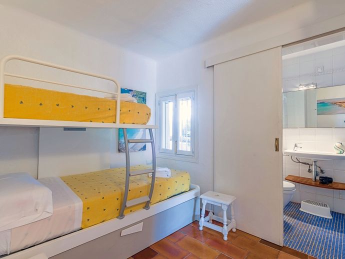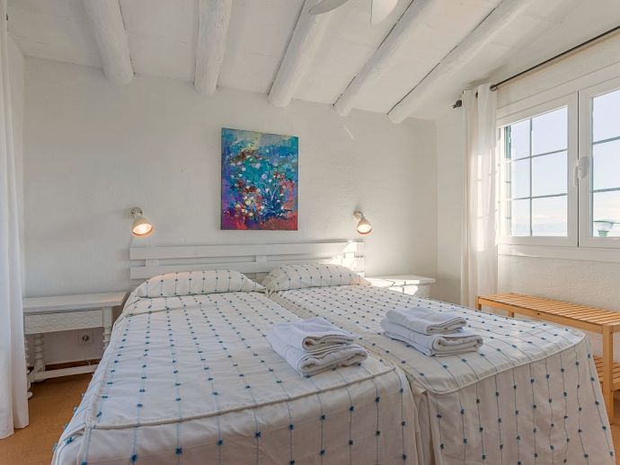 Bedroom: 2 x single beds, A/C, direct access to a terrace with sea views.