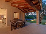 Covered terrace furnished with modern seating, dining facilities and barbecue.