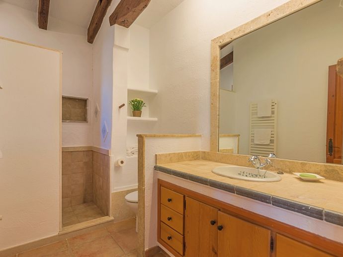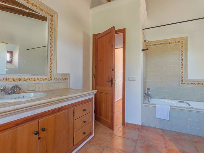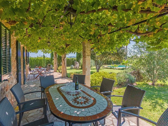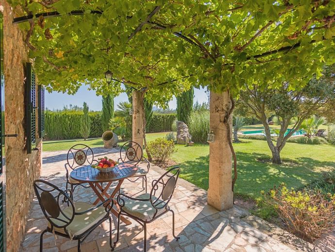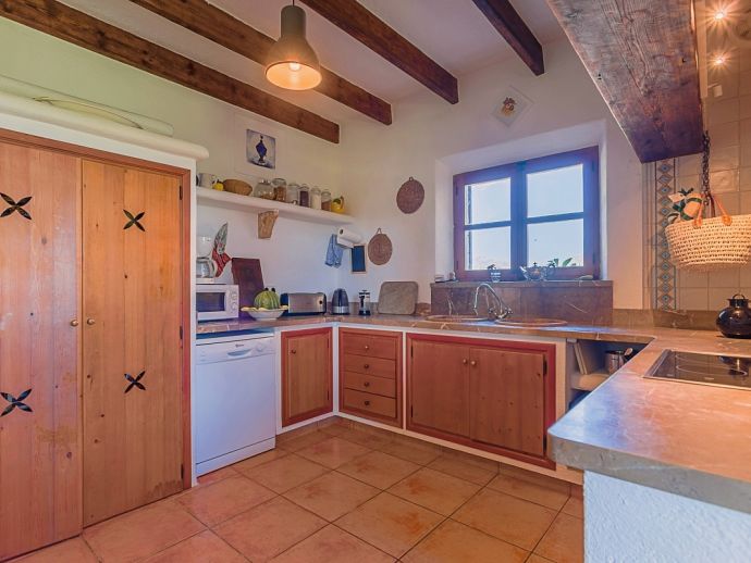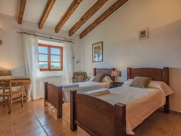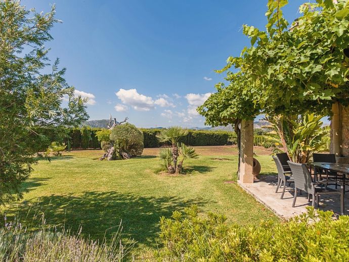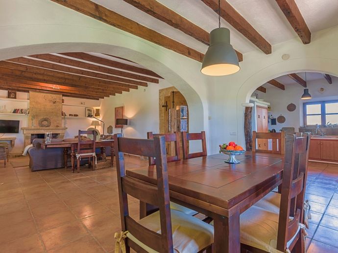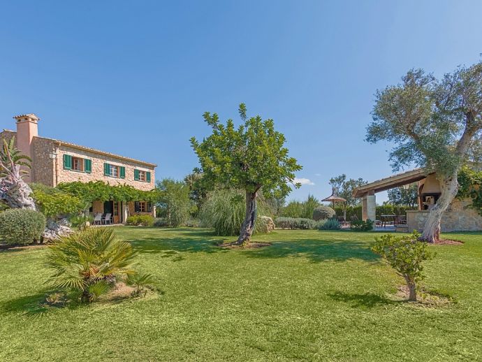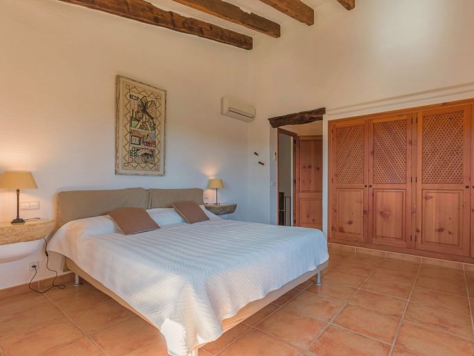 Finca Pilar is a large Mallorcan villa, full of traditional character and surrounded by stunning gardens with a private swimming pool. Perfect for outdoor living and al-fresco dining, this property also offers beautiful views over the surrounding countryside and an excellent location, 10 minutes from the Golf course, close to Pollensa old town, Alcudia and the beautiful sandy beaches of Port de Pollensa, Platja d'Alcudia and Platja de Muro which are just a short drive away (10/15 minutes). This stone-built villa sleeps 8 guests in 4 air-conditioned bedrooms and is furnished with taste and style making wide use of traditional elements and modern comforts. When entering the villa you are greeted by an impressive double-height entrance hall and staircase. Directly opposite is a large living space, a lounge, a dining area and a kitchen with beamed ceilings, whitewashed walls and archways that define the different areas. The lounge has a feature fireplace, satellite TV, comfortable sofas and a dining table/chairs. The fully equipped kitchen has retained a rustic charm whilst integrating all modern conveniences and appliances. Doors lead out to a covered terrace that wraps around the villa. Also on this floor is a guest toilet, utility room and double bedroom with access to the garden/terrace and an en-suite bathroom. On the first floor are 3 further bedrooms, two twin bedrooms which share a family shower room and a master double bedroom with en-suite bathroom and access to a large roof terrace with fantastic views. Outside, the charming Mallorcan stone exterior of Finca Pilar is paired with Cypress trees and Mediterranean shrubs across wide green gardens with a dazzling landscape as a backdrop, the beauty should be experienced. There is a mix of open and covered terraces with seating areas, together with an amazing covered barbecue area by the poolside - an excellent spot for dining al-fresco and the gorgeous private pool is ideal to cool down or just relax poolside on one of the comfortable sunbeds. This truly stunning villa provides an oasis of peace and tranquillity for families or friends with an added bonus of being close to amenities, stunning beaches, traditional villages and ancient towns!