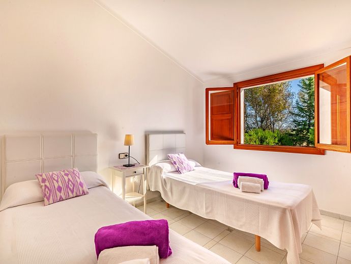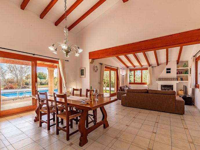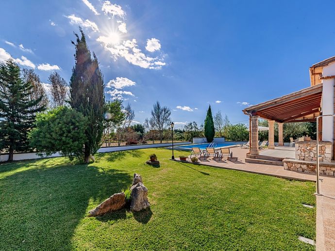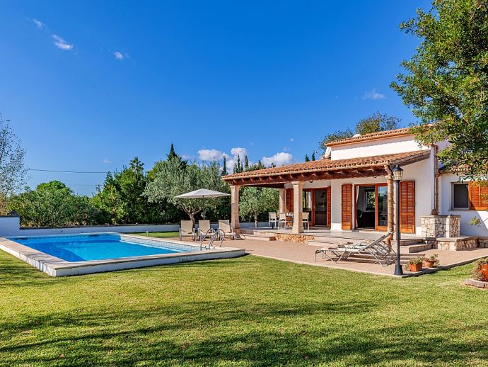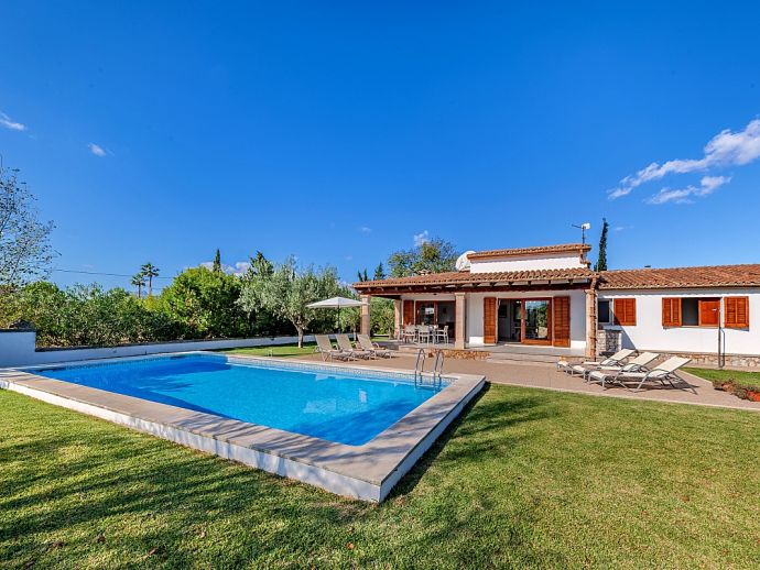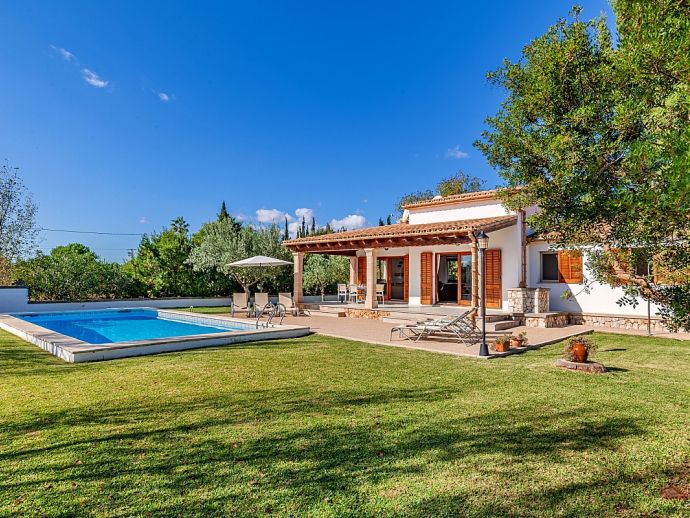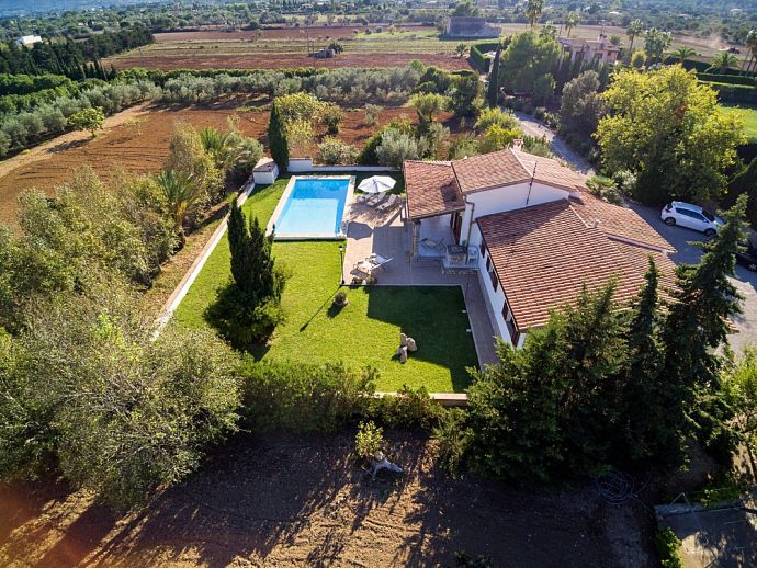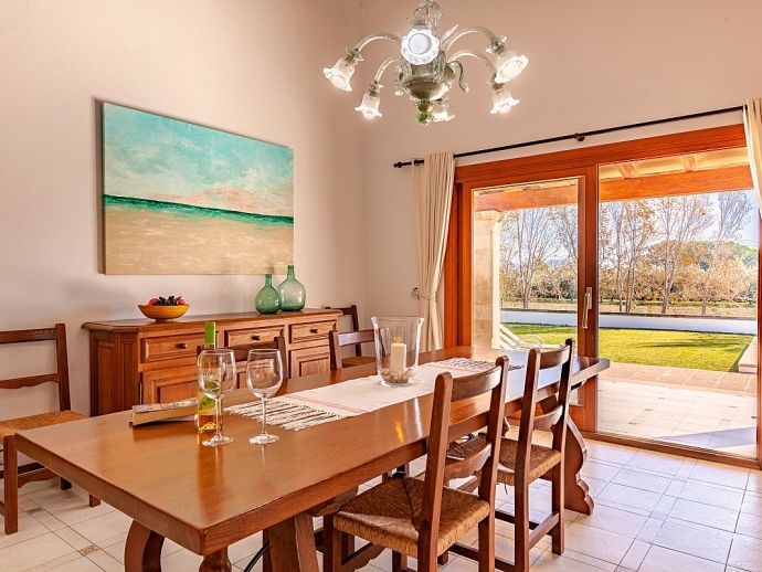 Villa Ariana is an attractive Mallorcan villa with extensive gardens and a private swimming pool that comfortably sleeps 6 guests in 3 air-conditioned bedrooms and spacious, welcoming interiors. The villa has a superb location on the edge of S'Albufera natural reserve, close to the sea and within a 15-minute drive you can be on the golf course, visiting ancient towns, or relaxing on some of the best sandy beaches in Mallorca, the choice is yours! This stone-built property is set over one floor with an extensive terrace that runs the length of the property and large patio doors give you access from the living/dining room and provide an abundance of natural light. This spacious triple-aspect room has high beamed ceilings, whitewashed walls, a feature fireplace, satellite TV, DVD player, Wi-Fi and is furnished with comfortable sofas and a dining table. The kitchen is separate and fully equipped with modern units and appliances with a utility area to the side. The 3 bedrooms are tastefully furnished and bright with picture windows and views of the garden, there is one double with an en-suite bathroom, two twins and a family shower room. Outside, the true Mallorcan charm continues to impress with private gardens, planted with Mediterranean trees, olive trees, palm trees, flowers, shrubs and a well-maintained lawn. The pool is generously sized measuring 50 m² and a poolside shower and sunbeds are provided for the guests to enjoy long days of sunshine. A brick-built barbecue and outdoor dining facilities are ideal for al-fresco dining whilst admiring the countryside views and nature that surrounds you. Villa Ariana is the perfect choice for families or friends that love outdoor living and privacy, together with the comfort of a truly special holiday home in a location close to great beaches and ancient towns!