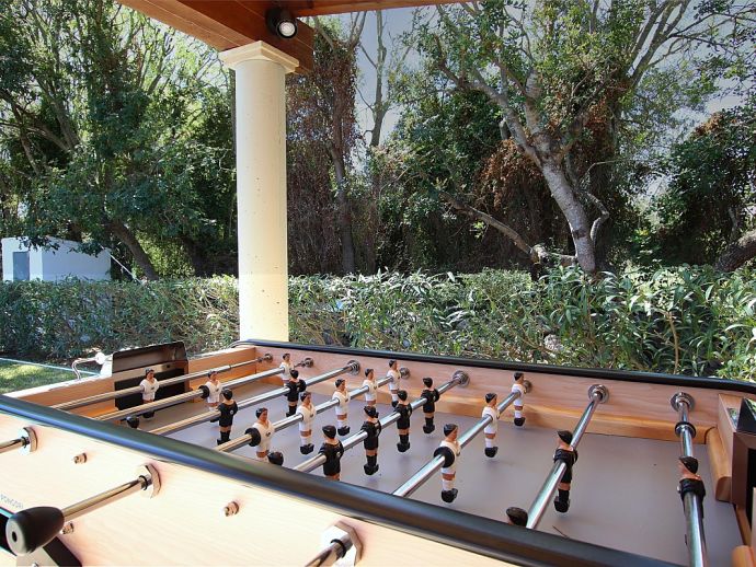 Shaded terraces with games, table tennis, table football.