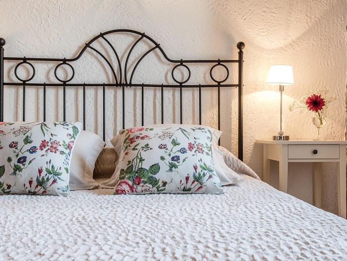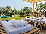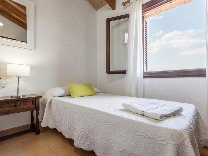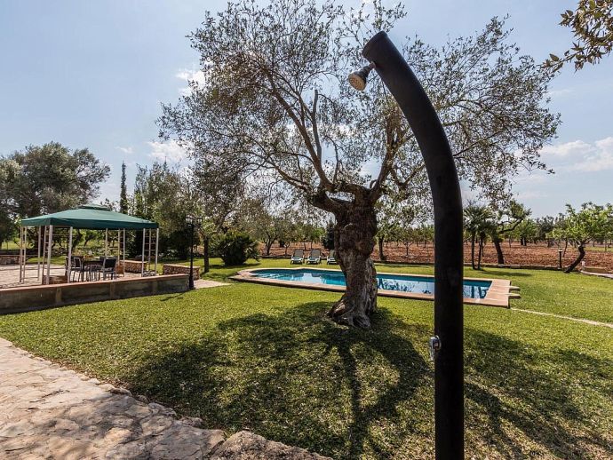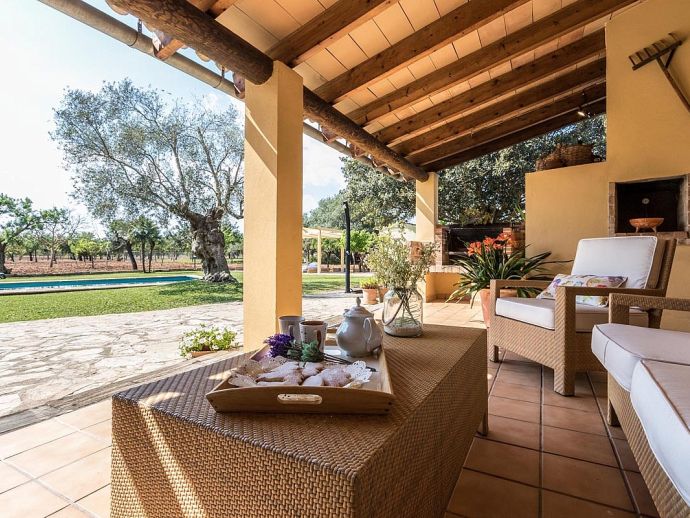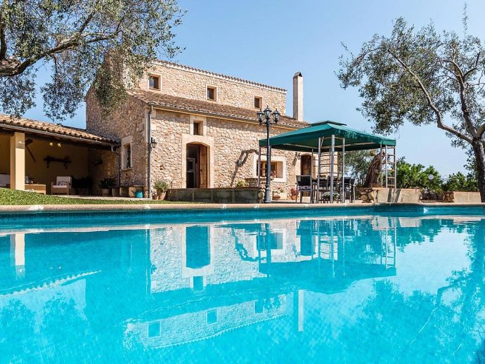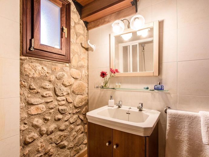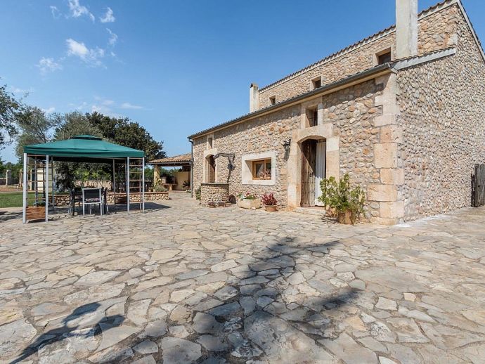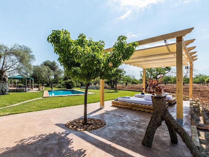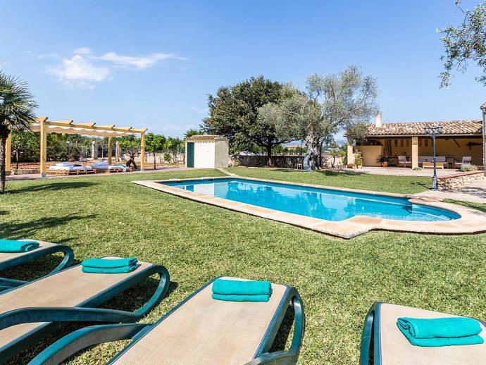 Can Aroa with a private pool is a charming stone-built house located in the peaceful, rural area of Búger, halfway between the villages of Búger and Sa Pobla. This two-storey property has been lovingly restored with great style whilst maintaining the old and rural character, wooden beam ceilings, tiled floors and beautiful exposed stone walls. The ground floor consists of a cosy lounge with satellite TV, DVD player, a wood-burner and comfortable sofas. A spacious fully equipped kitchen with a dining table/chairs and fitted with modern appliances. A double bedroom and a bathroom. There are 2 further bedrooms upstairs, a double and a twin, both have lovely views towards the village of Búger and share a family bathroom. The house is set in mature gardens with an inviting private pool with Roman steps which is surrounded by plenty of lawn areas, so great for families with children. There are sun loungers and chill-out areas as well as a fabulous covered terrace with a built-in barbecue, large wooden table and benches, perfect for grilled meals al fresco. Can Arora offers a peaceful retreat for a relaxing holiday and is ideal for those who want to escape the main tourist areas and discover authentic rural Mallorca!