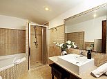 Bedroom: 1 x double bed, A/C, en-suite bathroom (corner bath, walk-in shower, w/c)