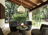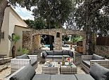 Chill-out area with lounge garden furniture, a covered terrace with a small bar, table football, table tennis.