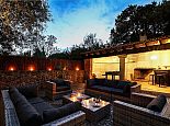 Covered dining terrace with an outdoor table for 8 people.