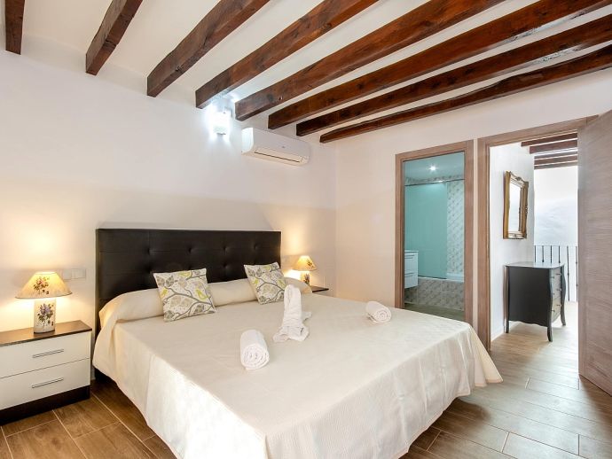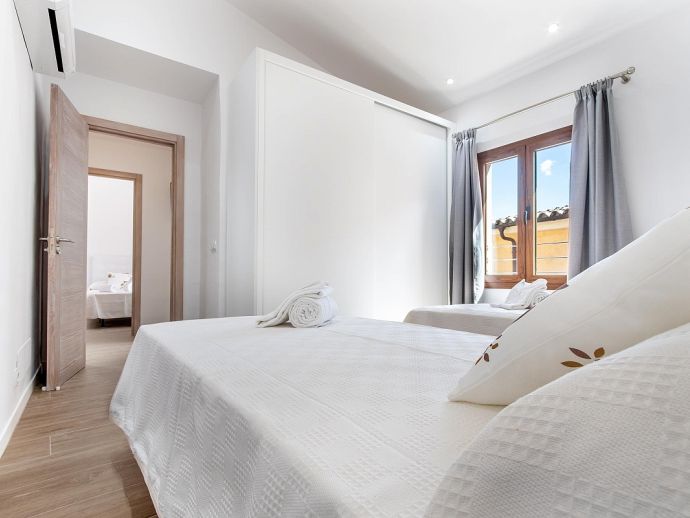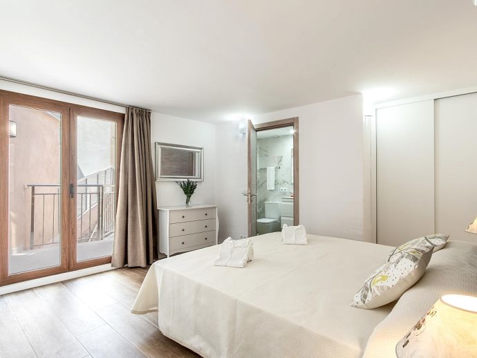 Casa Almudena is located in the heart of Pollenca's old town, 300 meters (4 minutes walk) from the impressive main square. This ancient town with attractive narrow streets is abundant with art galleries, first-class restaurants, tapas bars and cafes, there are several historical places of interest and the main square is also famous for its' Sunday markets. Port de Pollenca was once a simple fishing port, now it remains very attractive and one of the most popular resorts on the island. The picturesque town is full of Mallorcan charm and is home to long stretches of golden sand, a delightful promenade lined by pine and palm trees with a splendid array of cafes and restaurants and a chic marina. Cala San Vicente is a beautiful secluded resort village with a splendid beach and three small hidden bays enclosed by the imposing backdrop of the Tramuntana Mountains. These three bays provide fine sand and pebble beaches with crystal clear waters.