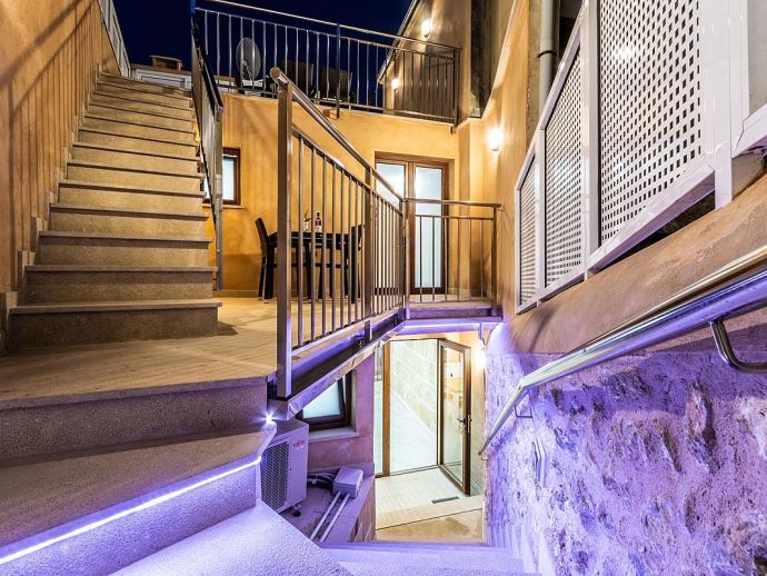 Plot 242 m² - Enclosed courtyard and terraces which are beautifully lit at night.