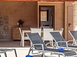 Sun terrace with plenty of sunbeds and a poolside shower.