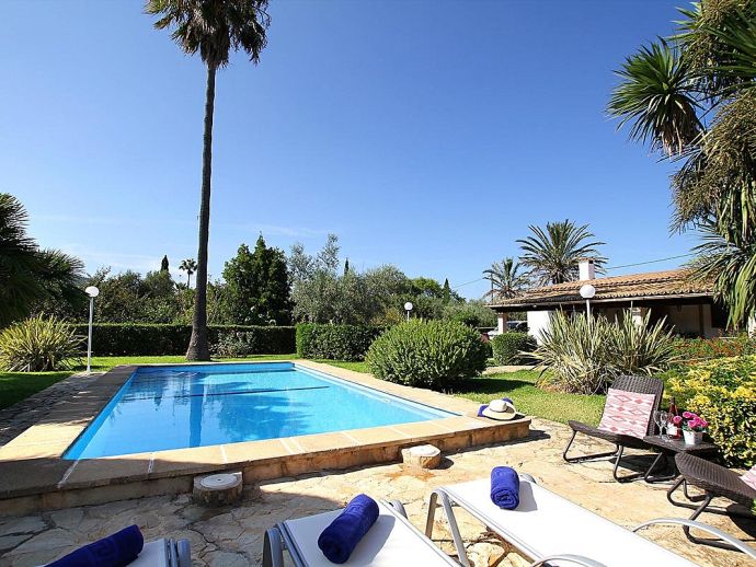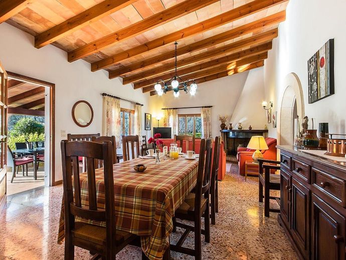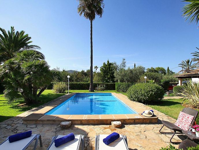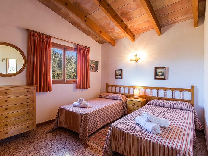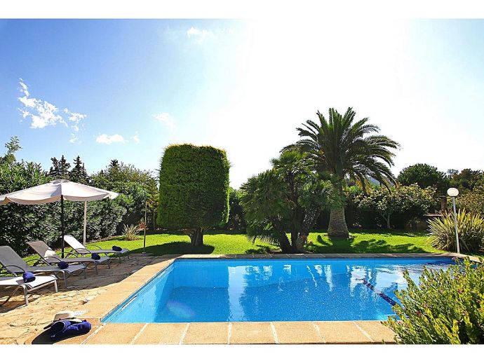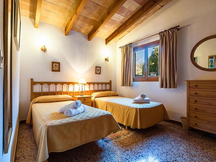 Finca Lorenzo with a private pool is a 2-bedroom family villa for 4 guests that offers an idyllic countryside setting in a very convenient location. Situated between Pollenca, Alcudia and Port de Pollenca gives you very easy access (10/15 minutes by car) to all three resorts and the fantastic sandy beaches on the east coast. This single level property is set in attractive mature gardens with great views across the countryside and to the Serra de Tramuntana mountains in the distance. The interiors are traditional in style with beam ceilings, tiled floors, white walls and wooden furnishings with modern amenities added including air-conditioning in the lounge and bedrooms, satellite TV and internet Wi-Fi. The accommodation comprises, two twin bedrooms, a family bathroom and an open-plan lounge/dining room with a fully equipped kitchen separated by a breakfast bar. The villa is accessed via a driveway and through gates to a private parking area and beautiful gardens with trees, shrubs, colourful flowers and a lawn. Here you will find an inviting pool with Roman steps and sun loungers, table tennis, a covered outdoor kitchen/built-in barbeque area and a furnished terrace with lovely views, a perfect setting for evenings spent dining al fresco. Finca Lorenzo would suit a small family or a couple seeking a peaceful countryside location that's still close to towns, shops, restaurants, beaches and attractions!