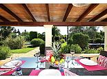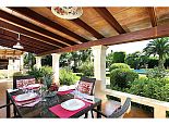 Covered terrace, dining and garden furniture.