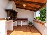 Covered outdoor kitchen/food preparation area, built-in barbecue.
