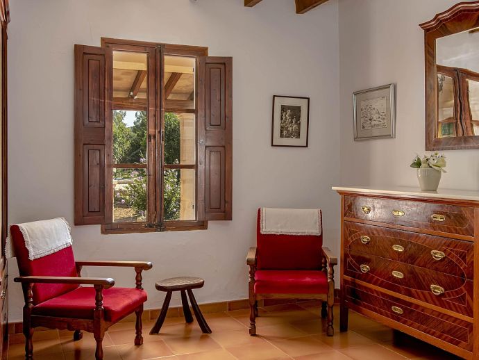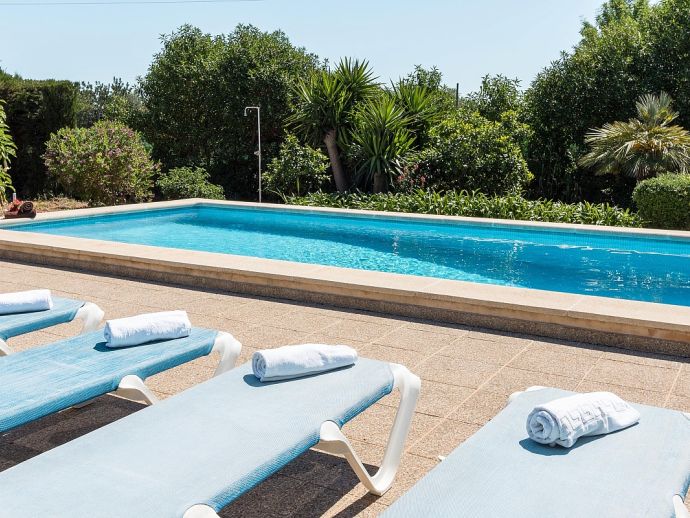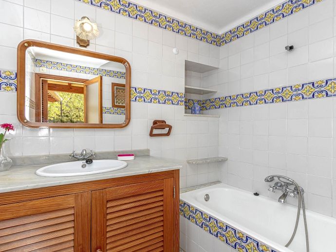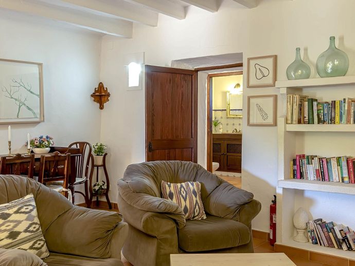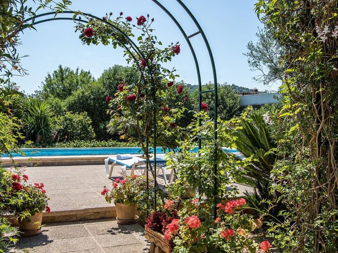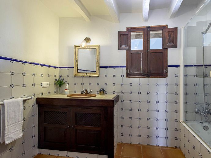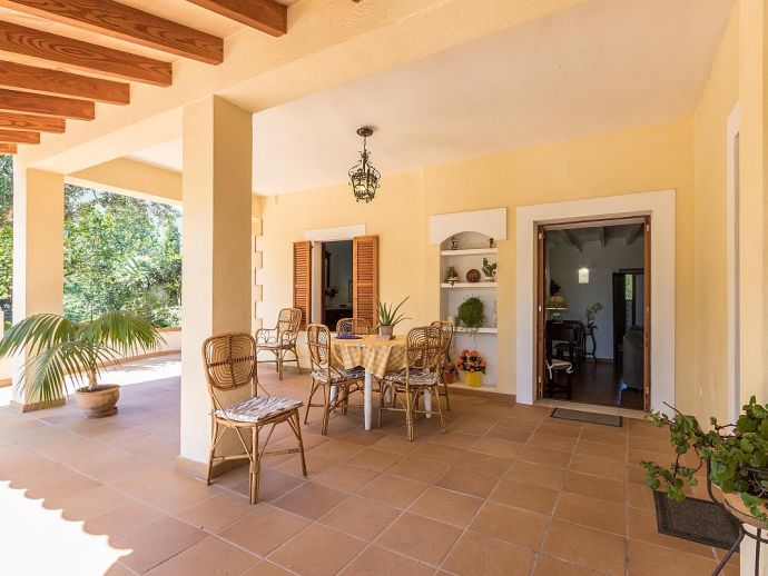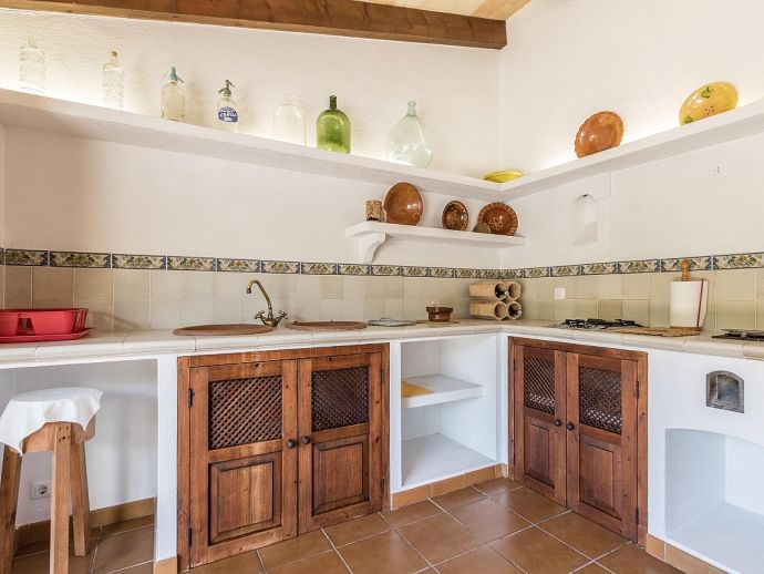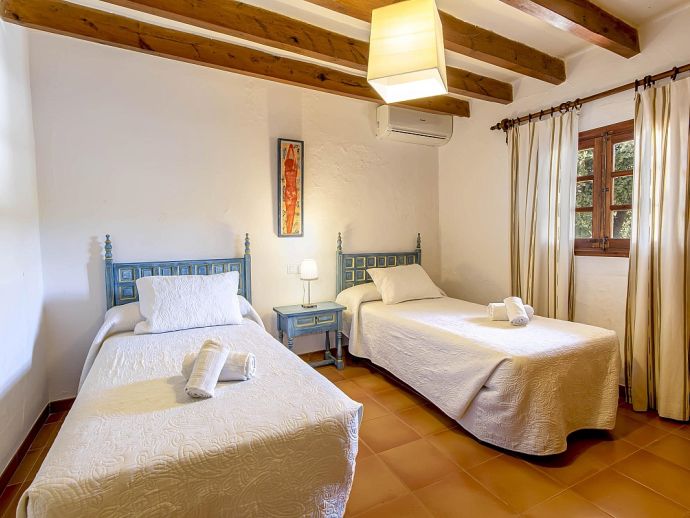 Casa Agustina with a private pool is a traditional Mallorquin style country house set off the main road that connects Pollensa and Port de Pollensa. This convenient location provides easy access to Old Town Pollensa, Pollensa Golf course and the beautiful beaches at Port de Pollensa and Cala San Vicente. The house sleeps 6 guests and consists of two floors with only the ground floor available to rent. Inside, the decoration is rustic in style with wood beam ceilings, tiled floors, white-washed walls and some antique furnishings. The accommodation comprises a lounge/dining room, 3 air-conditioned bedrooms, one double, two twins and a shared family bathroom. Through the outside terrace, a door leads into the kitchen which is fitted with all the necessary electrical appliances. Adjacent is a huge traditional kitchen/barbeque house equipped with work surfaces, a sink, dining furniture, fireplace and built-in barbecue and wood oven. A second exterior modern bathroom and utility area with laundry facilities complete the house. Outside, an established garden and a sun terrace with loungers surround a private swimming pool, perfect for lazy days relaxing in the sunshine. Casa Agustina is a great family retreat offering spacious accommodation close to shops, restaurants and beaches!