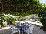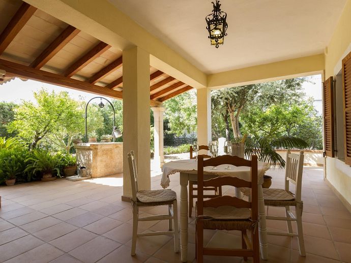 Covered terrace with garden/dining furniture.