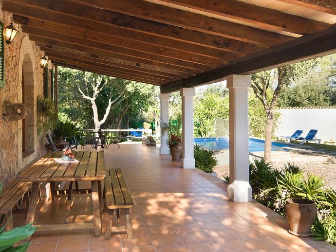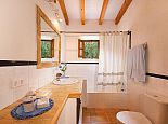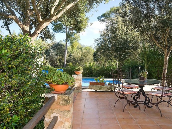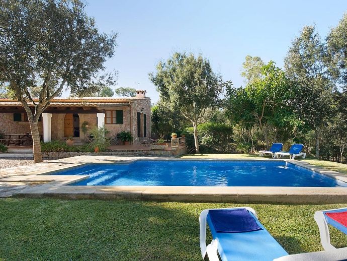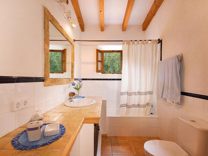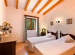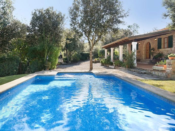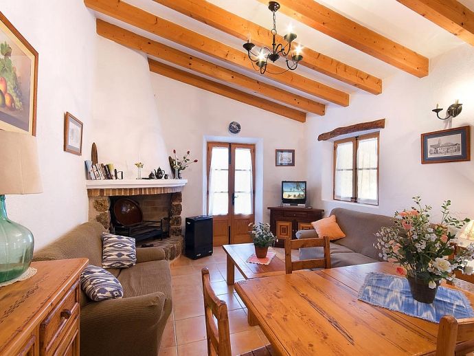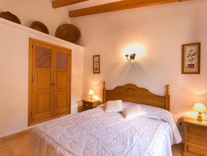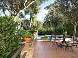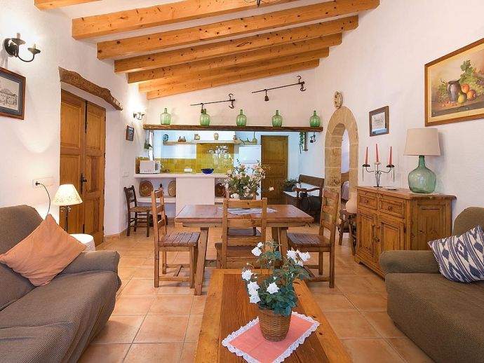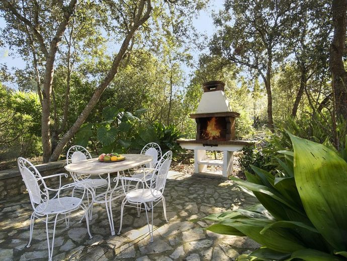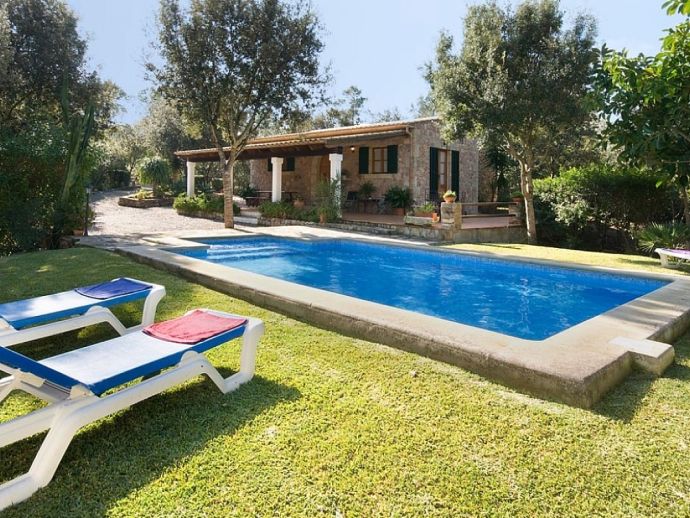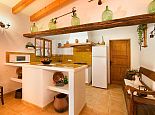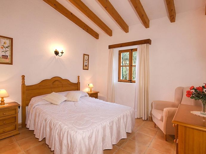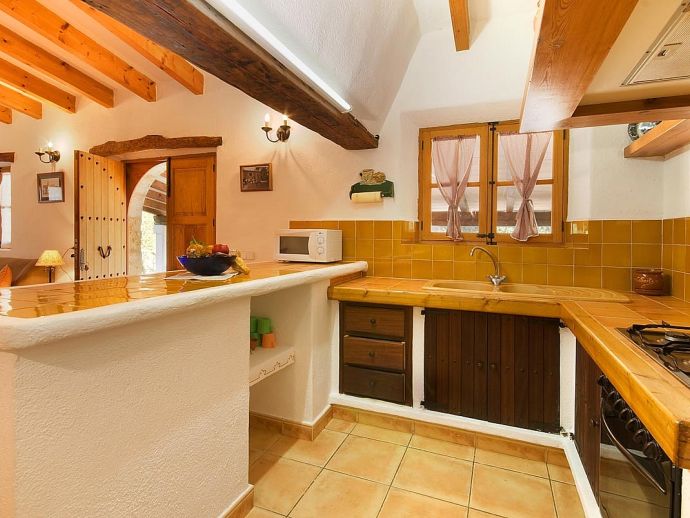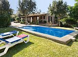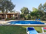 Casa Thiago with a private pool is a 2-bedroom rural cottage for up to 4 guests that offers a totally private idyllic setting amidst the pine woodlands. Located between Pollenca, Alcudia and Port de Pollenca allows good access (10/15 minutes by car) to all three resorts and the fantastic sandy beaches on the east coast. This one-storey villa is built in a traditional style with terracotta tiles, white-washed walls, beamed ceilings and exterior stone-clad walls. The interiors are comfortable, well furnished and comprise a master double bedroom, a twin bedroom, a full bathroom, a good size lounge dining room with satellite TV, DVD player and an American-style fitted kitchen with a gas top, oven, microwave, dishwasher, washing machine and a fridge/freezer. The thick stone walls provide a cool ambience and there is air-conditioning in the bedrooms. The villa is reached via a drive through the pine woodlands to a private well-kept garden with a lawn that surrounds the swimming pool with Roman steps. There are furnished sun terraces, a built-in barbecue and two areas, including a covered garden patio for al fresco dining. Casa Thiago provides an authentic rural retreat and is ideal for couples who want to spend a romantic holiday together or for small families who want to be in an extremely quiet area whilst still having good access to busier resorts and activities if required.
