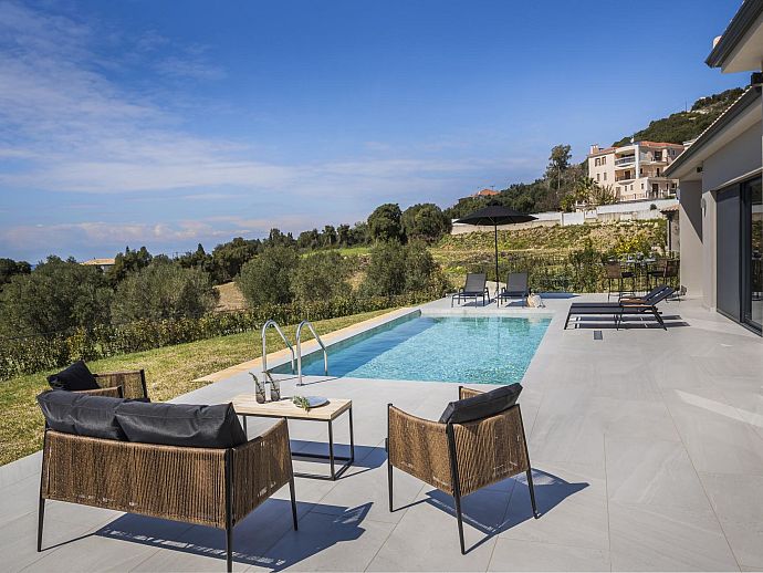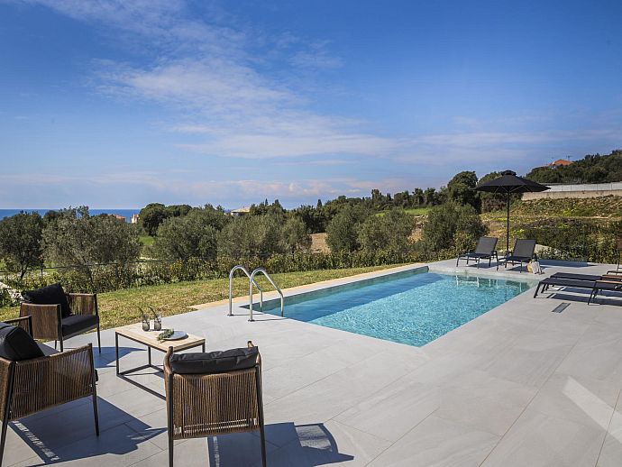 Near-identical sister property Chrysa can be found in its own private grounds a little further along from Eirini. Both properties rented together would be a good choice for a larger party or even two independent families as everyone could be within easy distance of each other while at the same time fully retain their individual space and privacy.