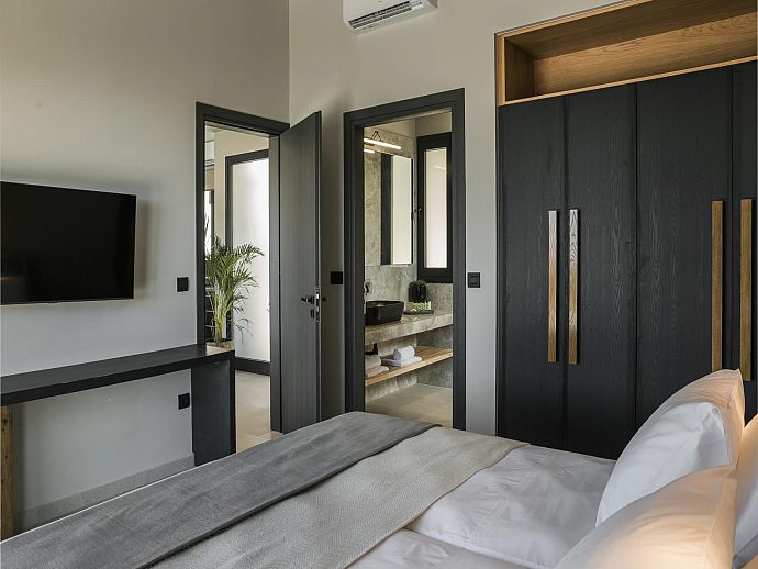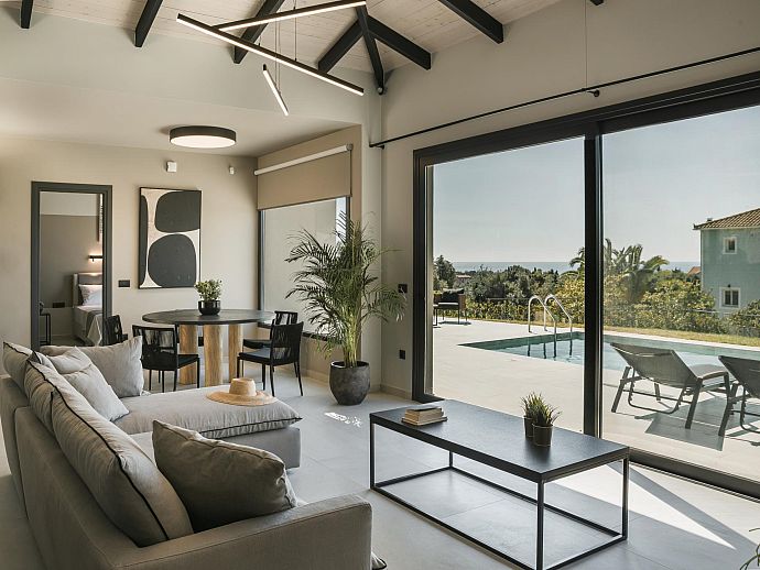 Ensuring parity for sharing parties the equally attractive bedrooms are both en suite and have independent access directly to the pool terrace, their placement on opposing sides of the central living area bringing an added degree of privacy.