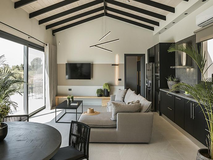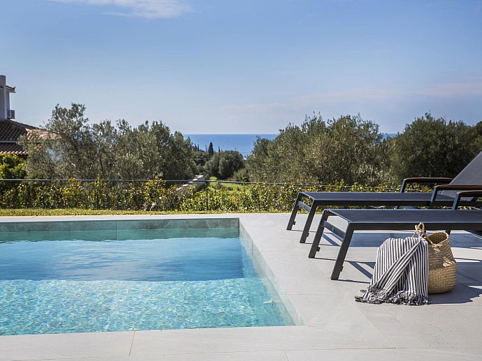 Charming views across the tops of olive trees to the glittering Ionian Sea are yours to enjoy from this comfortable, contemporary and thoughtfully designed property sitting in a gently elevated position within easy reach of several of Kefalonia’s most attractive beaches, many good tavernas and the island’s lively capital Argostoli.