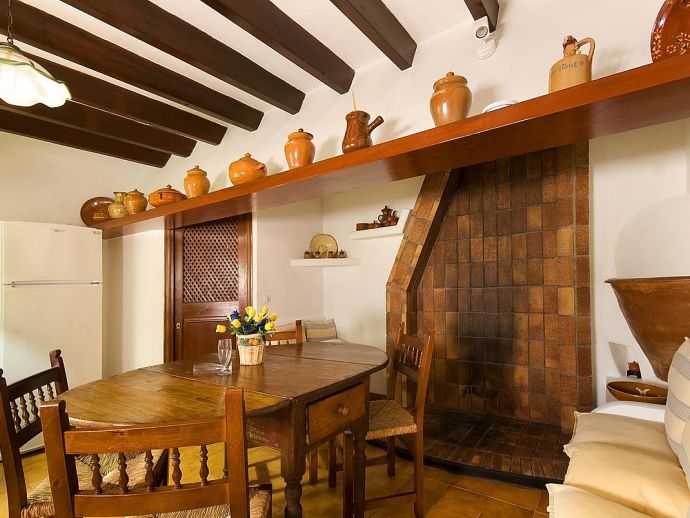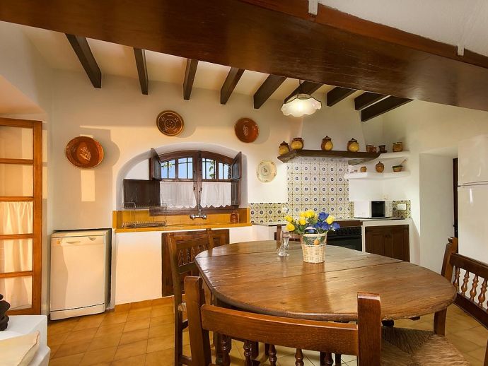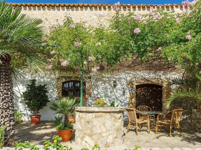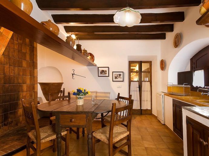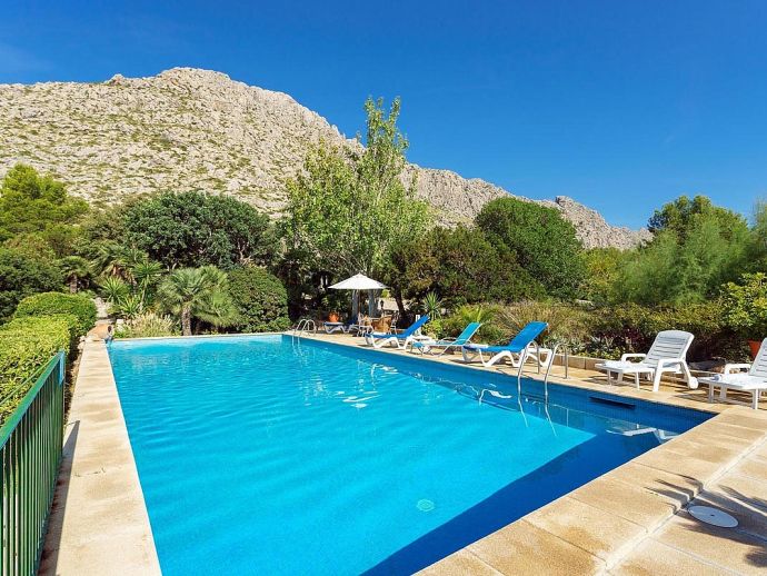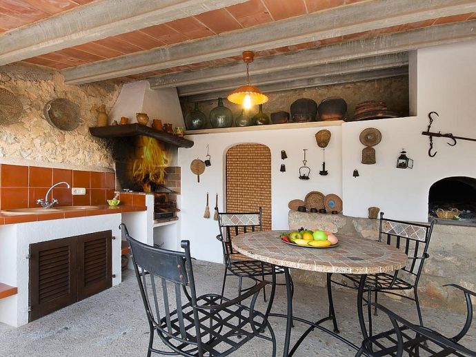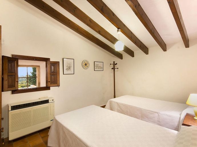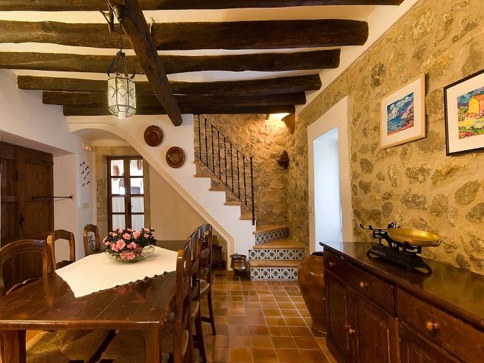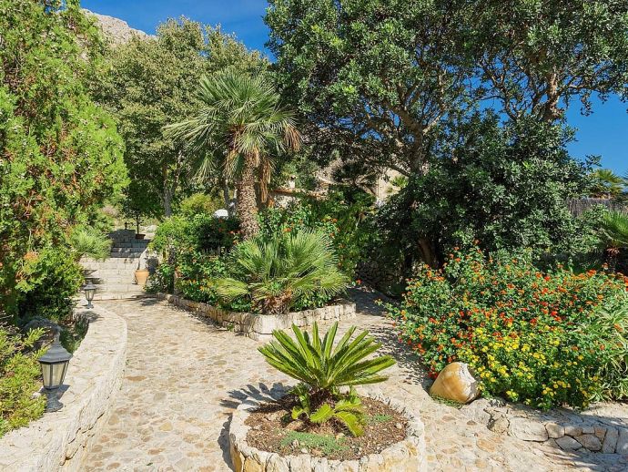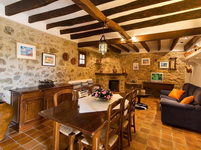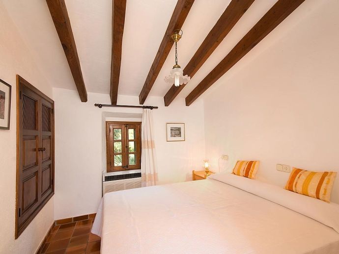Casa Boquer with a private pool is a semi-detached Mallorcan country house located just outside the town of Port de Pollenca and within walking distance to the beautiful sandy beach, shops and restaurants (approximately 20/25 minutes). The property is situated in the picturesque area of Boquer, surrounded by countryside and nature with a dramatic backdrop of the Tramuntana Mountains behind it. The house sleeps 6 guests and has been renovated as a holiday home with great sensitivity to the building's original design and decoration. Inside, it is cool and rustic with thick stone walls, high beamed ceilings, original tiled floors and beautiful antique Mallorcan furniture, some of it original to the house. On the ground floor, there is a spacious lounge/dining room which is reached by an exterior doorway, and a kitchen that combines traditional design with the latest fittings such as an electric oven, ceramic hob, dishwasher, fridge/freezer and a washing machine. Double doors lead out to a fantastic covered barbecue/outdoor kitchen area with an exterior full bathroom nearby. The three bedrooms are upstairs and consist of two twins (one of them with an en-suite full bathroom) and a double bedroom. All bedrooms have air-conditioning and a further full bathroom completes the upper level. Outside, the garden is well designed with a trekking/trail running circuit of 310 metres and stone sun terraces with pretty plant pots that run around the private pool. The views from the pool area are amazing, overlooking the whole resort of Port de Pollenca. Casa Boquer is a house with lots of historic character, a lovely place for a relaxing and peaceful holiday with a group of friends or family. It also makes a good base for walking, bird-watching, sketching and cycling due to the beautiful countryside that surrounds it.