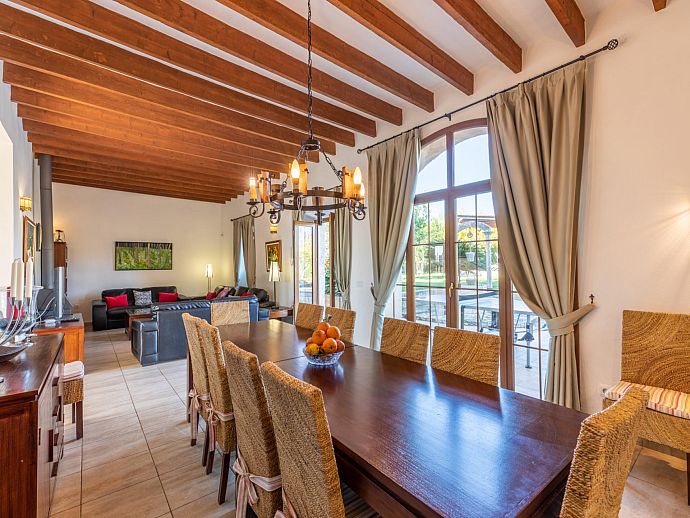 A substantial amount of holiday time will surely be apportioned to the shady, beamed terrace, a couple of steps from the pool. With in-built barbecue, long wooden table and direct access to the house through scenic windows spanning ceiling to floor, the main focal point naturally shifts to this area, as the sun goes down and the rumblings of hunger begin.