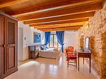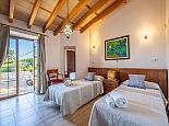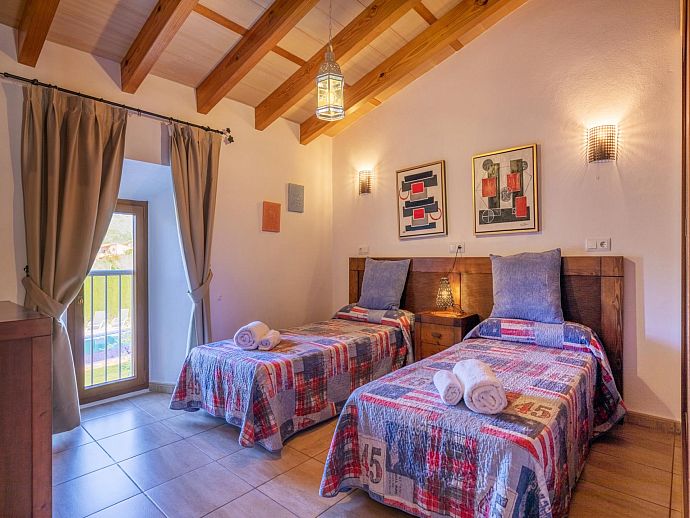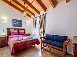 The cosy and spacious interior is a pleasant blend of stone feature walls, wooden beamed ceilings, hanging lanterns and ornate ceramic tiled bathrooms, complemented with a ‘dash of modern’ and far reaching views from the upper floor rooms. A fully equipped kitchen and open plan living/dining area with high beamed ceilings are light, bright and a pleasure for everyone to congregate in. With the majority of bedrooms benefiting from en suite facilities, the room distribution of this welcoming home has been carefully thought out, including easy wheelchair access to ground floor rooms, making it ideal for large groups or a multi-generation holiday. Quality ‘together time’ enjoyed in the spacious, communal areas can be adjourned, in order to retreat to one’s own space to relax and unwind.