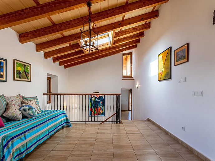 Mezzanine: Double bedroom (A/C) with doors leading to terrace and en suite bathroom. Dressing room.