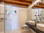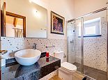 Upper Floor: Two twin bedrooms (A/C) each with en suite shower. Double bedroom (A/C) with en suite shower.
