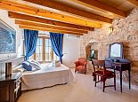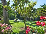 Encompassed by fruit, almond and palm trees huddled to one side of a lovingly tended lawn, this stone-clad country home comes complete with wooden shutters, sandstone arches and small wishing well. A salt water infinity pool offers promise of daily family entertainment, watched over by a small chill out area – perfect for doing just that. The grass area can comfortably accommodate an energetic game of frisbee and obscured behind a distinctive stone wall, a small niche beckons, ideal for soaking up the sun whilst immersing yourself in a good novel, amidst Bougainvillea and carefully placed, rustic plant pots.