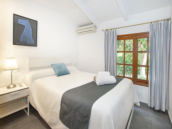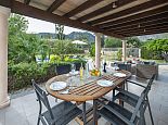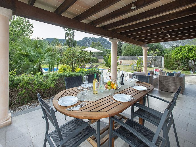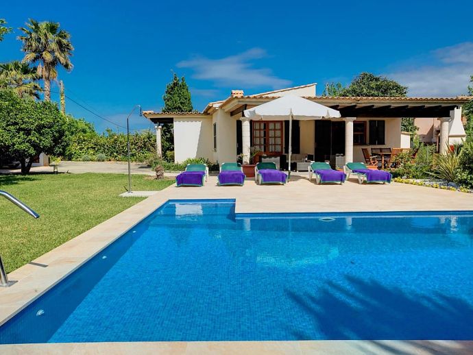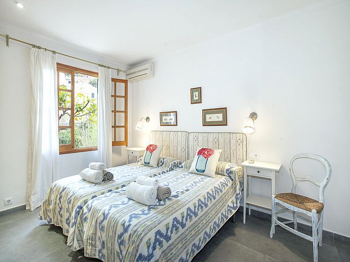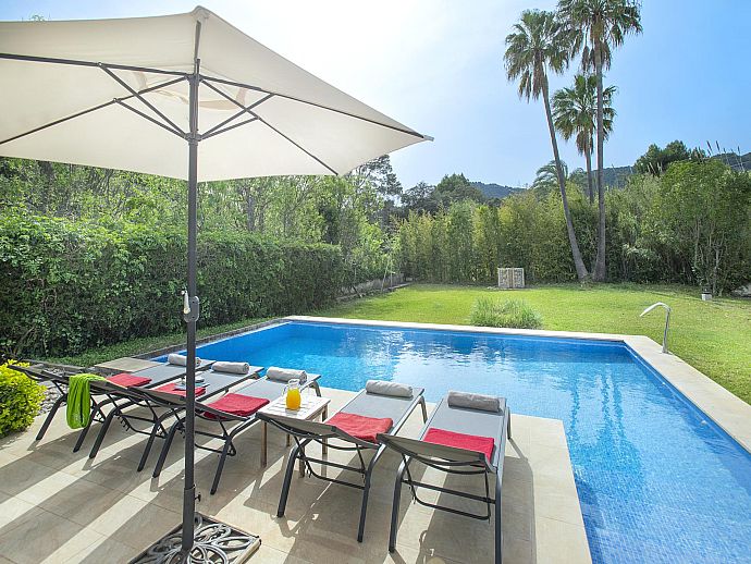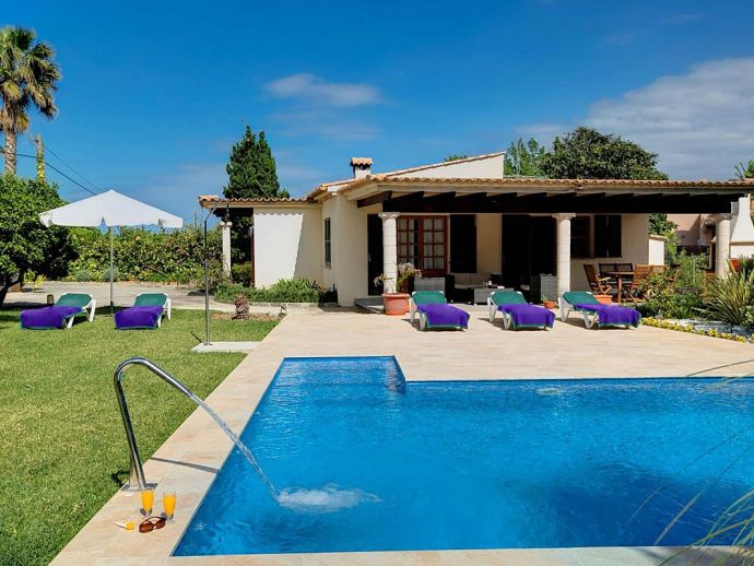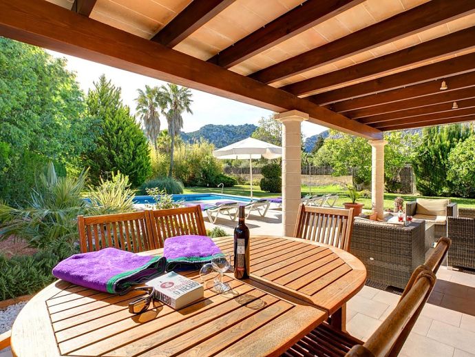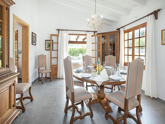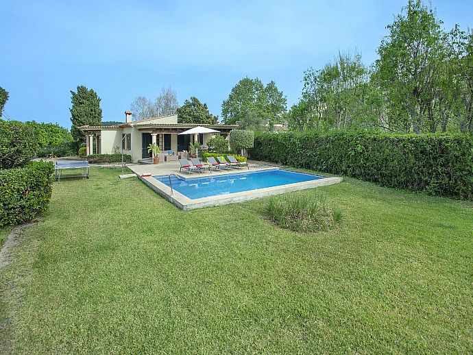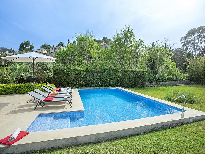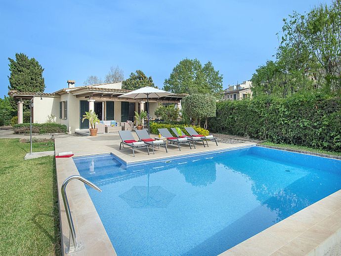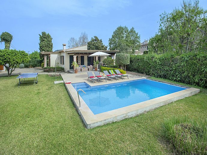The mature, well-screened grounds of Ca'n Menonge form a little oasis within which it is hard to believe you are so close to so much! Younger party members will certainly enjoy the lawn and private pool with its family-friendly Roman steps, overlooked by a lovely covered dining terrace with in-built barbecue adjacent. Internally, décor, facilities and fittings which include air conditioning in each bedroom, have all been chosen with care.