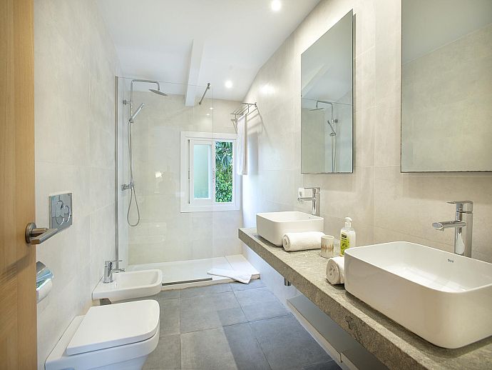 Shower room: walk-in shower, bidet, w/c, 2 x washbasin