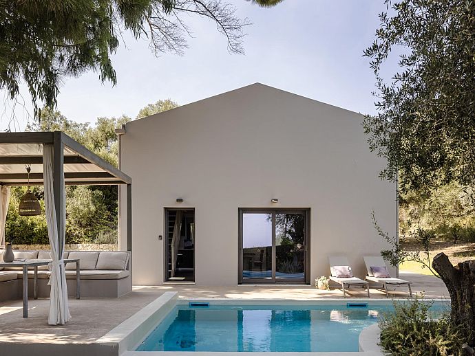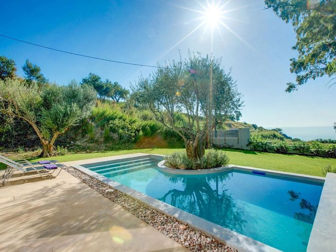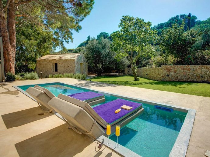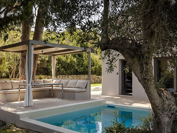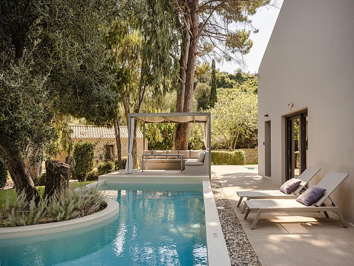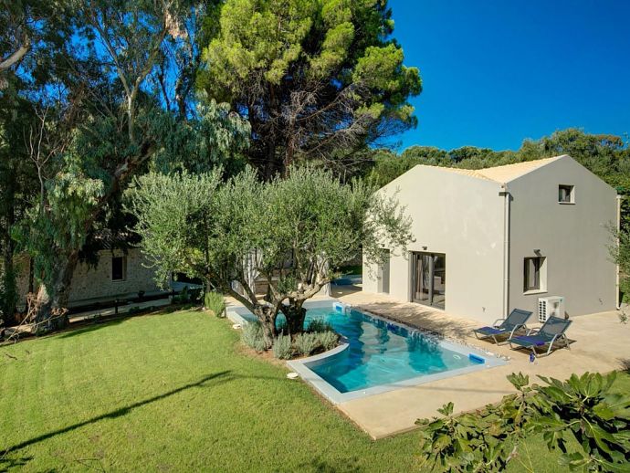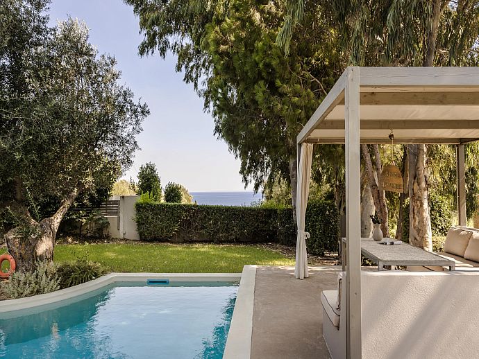 Stylish Romantic Retreat, A/C, 2 Private Pools, Garden with Ancient Trees & Sea Views - Near Spartia
