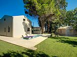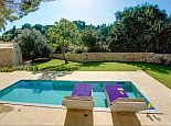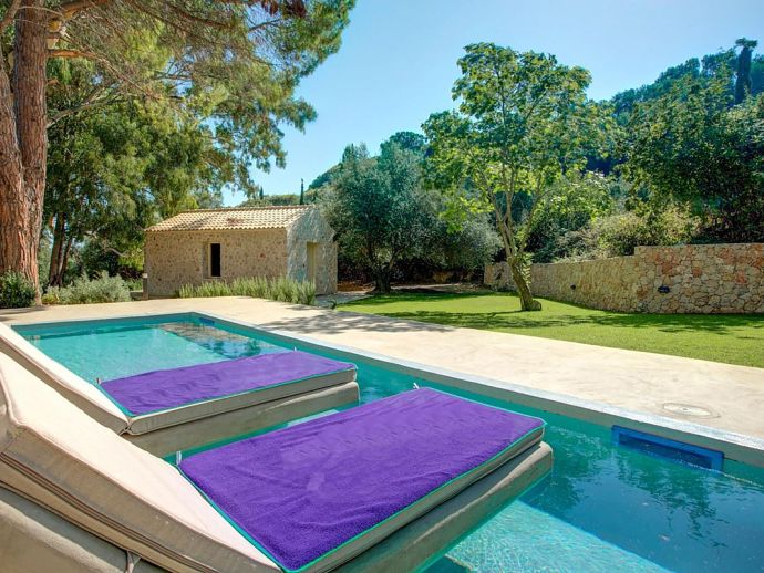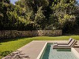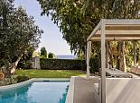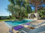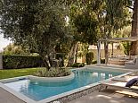 Artistically landscaped around an ancient olive tree, the principal pool has wide Roman steps across the width of one end with a curtained gazebo shading a comfortable seating/dining terrace at the other.