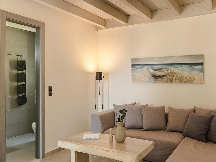 Just 2km away, the sleepy village of Spartia is home to a couple of local tavernas and a minimarket for everyday essentials. A simple taverna also sits alongside South-facing Spartia Beach (2.5km) which is backed by limestone cliffs and fringed by good walking country – particularly towards the ruins of St George Castle. With good shopping, daily markets of seafood, meat and fresh local produce plus a choice of waterside restaurants, the interesting island capital, Argostoli, is only 12km.