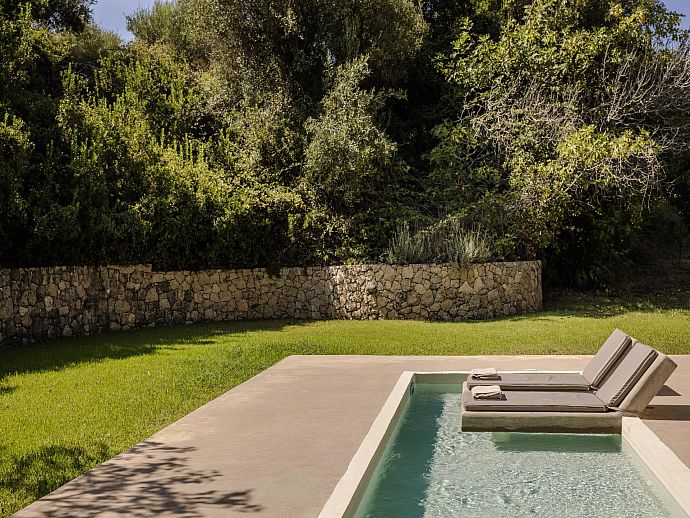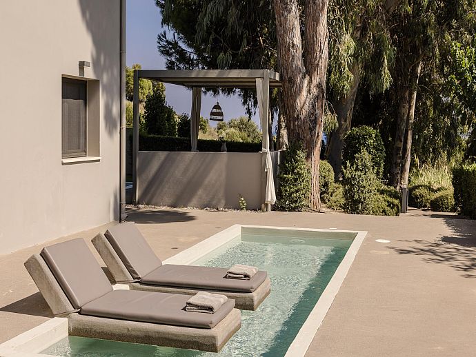 Private shallow pool (6m x 2m) incorporating two solid sun beds.