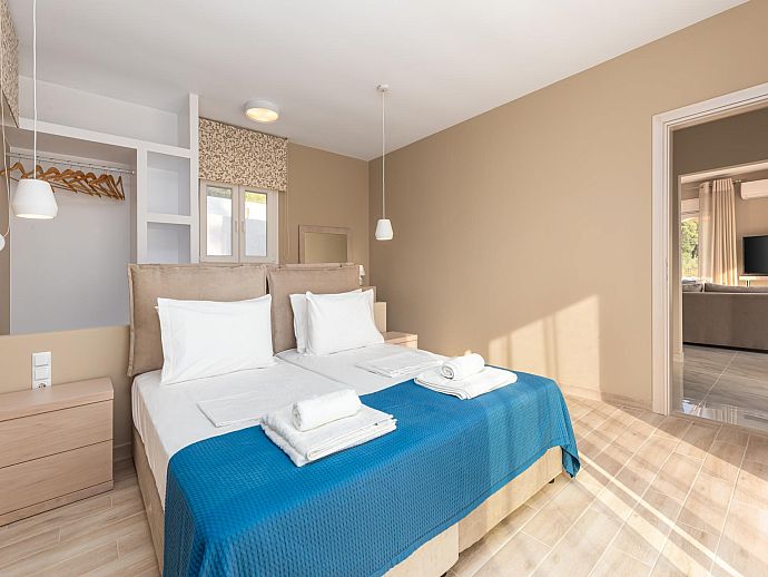 Bedroom: 2 single beds, A/C, en-suite shower room, doors to terrace