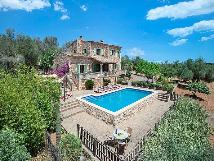 Located at 3 km from the local town of Felanitx and only 12 km from the charming natural harbour of Porto Colom. Felanitx enjoys a relaxed atmosphere where you can simply stroll around and enjoy the golden stone buildings and hidden squares and the Sunday market is definitely worth a visit. Once you have explored the town you could visit some of the surrounding vineyards as it is Mallorca's second wine-producing area, set in lovely countryside and close by you also have the Sanctuary Sant Salvador and Castle Santuari, both of which are perched on top of hills and have wonderful views of Mallorca and the sea. The authentic fishing port of Porto Colom is delightful with its Spanish flair, there´s some good restaurants and tapas bars by the waterfront or you can explore the beautiful pine forest hills and browse the quaint streets for pretty souvenirs. You´ll also find many activities here and it is the ideal starting point for a recreational boat trip along the coast.
