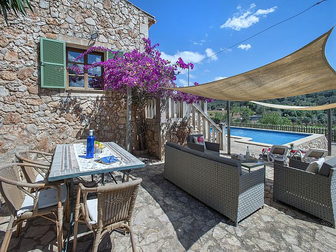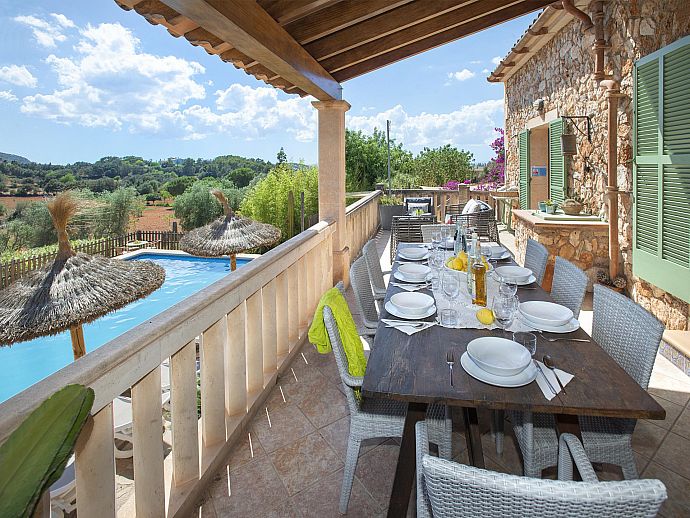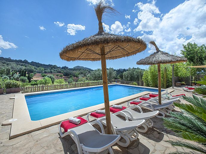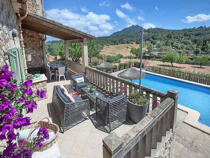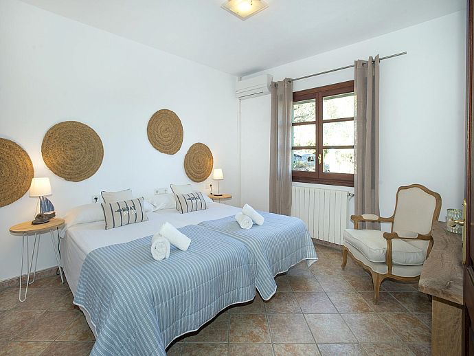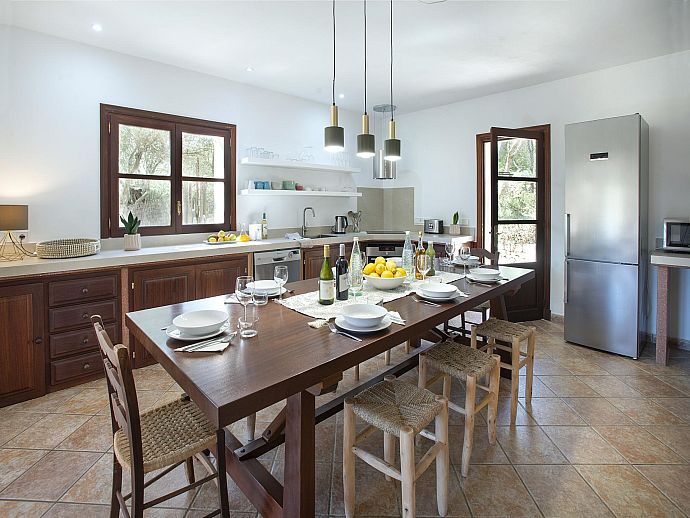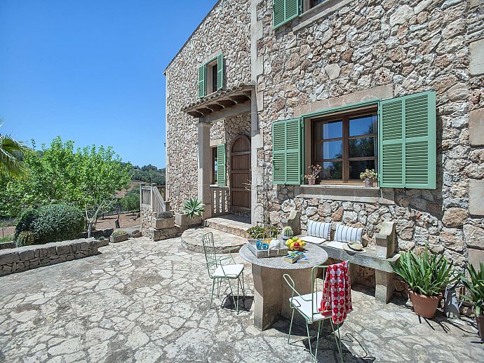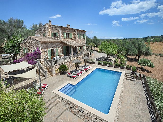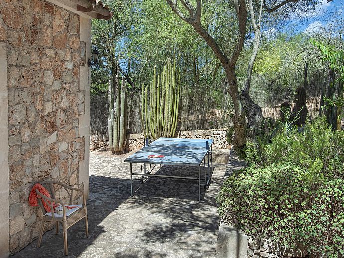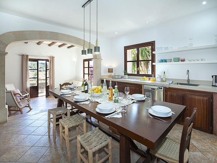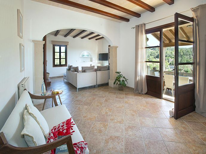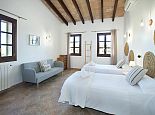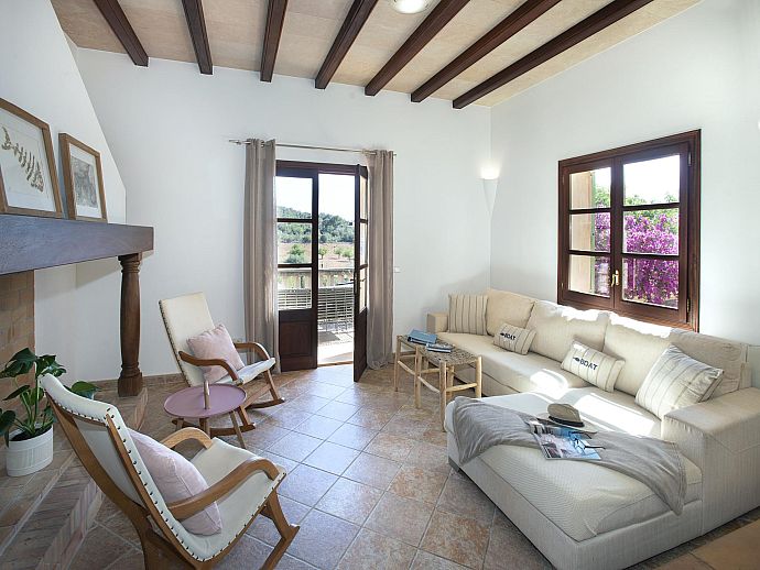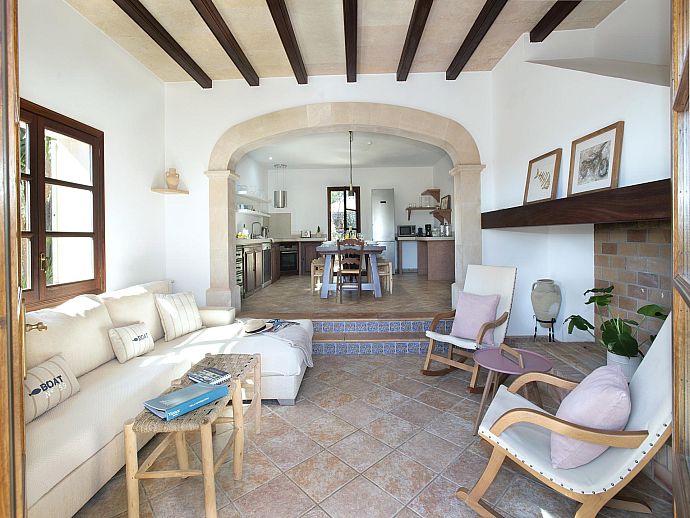 Internally décor is fresh and uncomplicated with a tasteful blend of antique and modern furnishings perfectly complementing the attractive beamed ceilings. Original, patterned ceramics are subtly inlaid in the staircase and local Mallorcan fabrics blend seamlessly with the more contemporary coloured cushions and curtains. Without exception the living accommodation is open and spacious allowing for easy sharing and relaxed summer living.