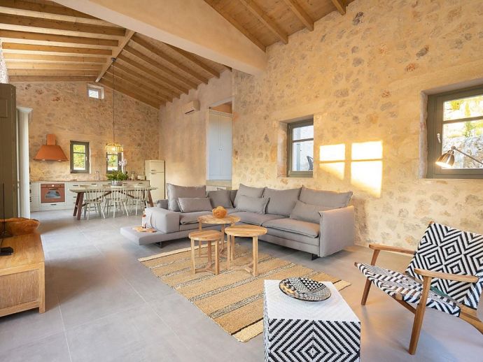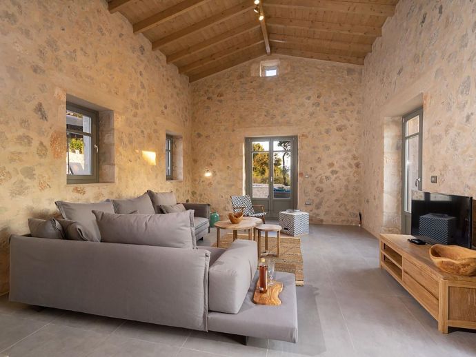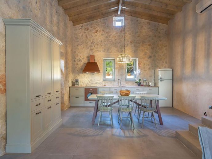 A wealth of natural local stone, wood and ceramics has been incorporated to great effect in the house fabric to create a most welcoming ambience, with vaulted beamed ceilings adding further character to the already spacious interior.
