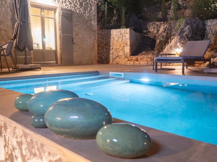 Private swimming pool (7.5m x 3.5m) with wide Roman steps.