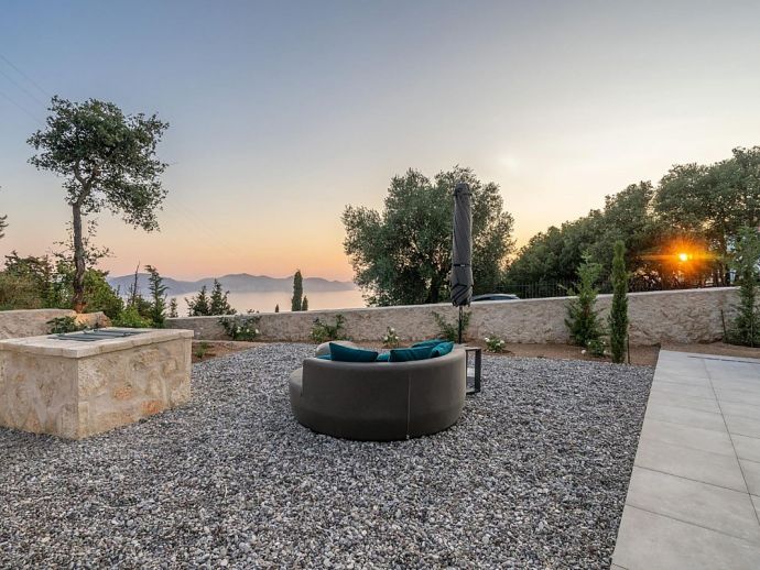 Kefalonia is an island of dramatic mountains, thickly forested hillsides, pale golden beaches and a cobalt coloured sea. Covered by pine forest and carpeted with wild sage, oregano, thyme and rosemary, the entire island is surrounded by fantastic shorelines that sweep down from secret coves with white pebbles in the north to golden sands in the south. Dafni is located in the sleepy hamlet of Defaranata with beautiful sea views across the sparkling Bay of Assos. The tiny yet enchanting village of Assos is one of the must-sees, a hidden and artistically beautiful place that carries great historical significance due to its strategic location. It's unique scenery of colourful pastel houses, lush vegetation, tranquil beaches, turquoise waters and breath taking sunsets makes it a place renowned for its natural beauty.