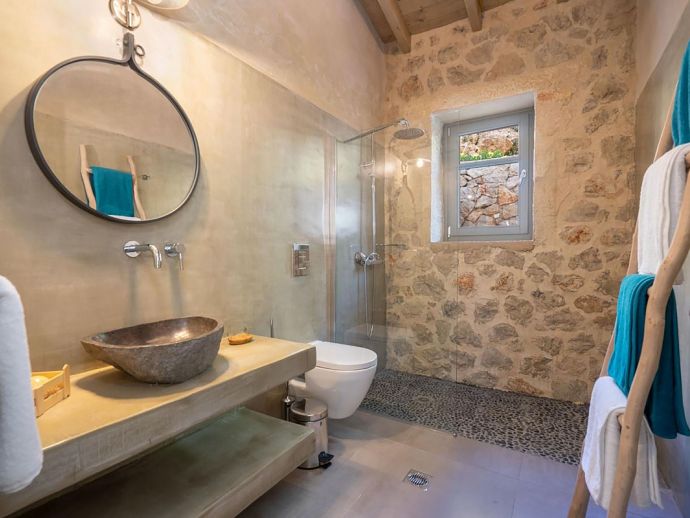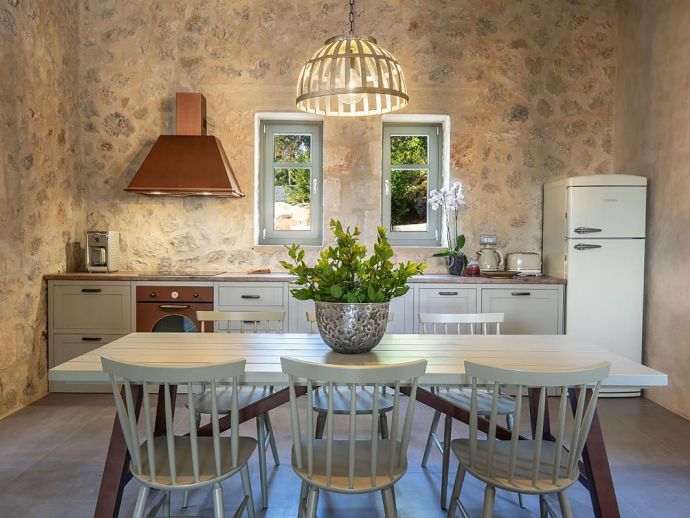 And equal care can be seen in the house finish; rooms are simply styled and all the more attractive for it, carefully chosen furnishings achieve a perfect balance of comfort and practicality with pride of place in the décor given to the unblemished hues of the exposed stone walls and mellow ochre shades of polished cement and sandstone. A modern farmhouse kitchen set to one side of the open plan lower floor blends in seamlessly with the semi-rustic theme of the property.