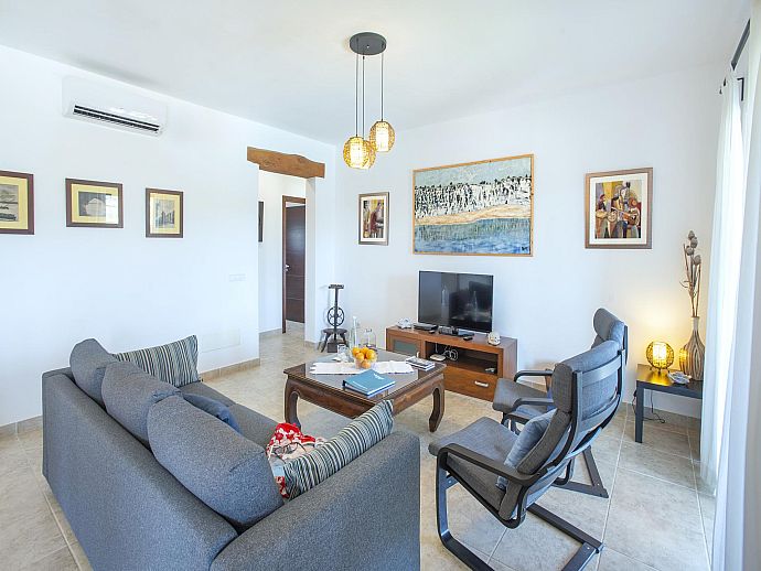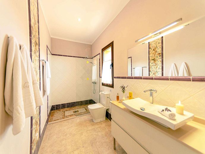 Internally, Son Monavi is spacious, well equipped and welcoming, each of the three bedrooms boasting its own bathroom and independent air conditioning. Great thought and care has clearly been invested in the décor which is immensely attractive and inviting. Colour-cordinated linens and fabrics, mongrammed towels plus many subtle, attentive touches are evidence of the pride Cati takes in providing a home from home experience to all her guests.