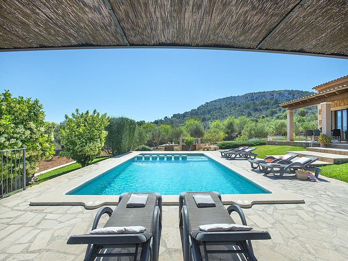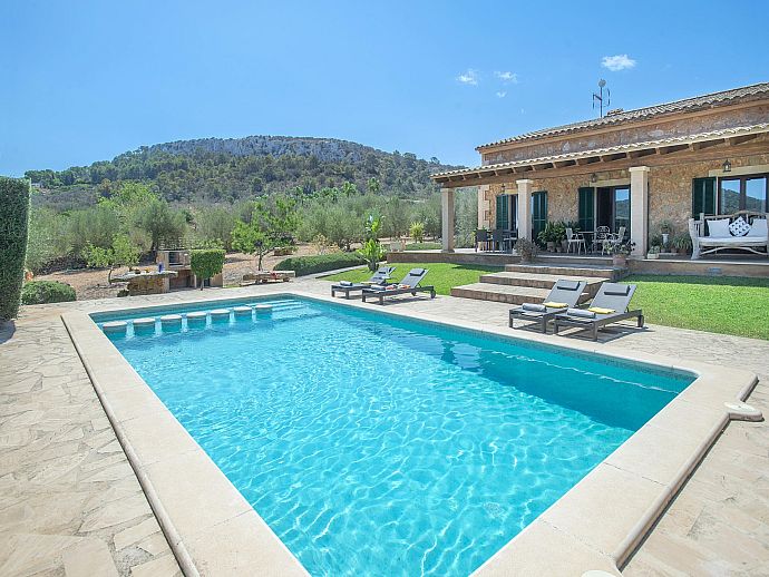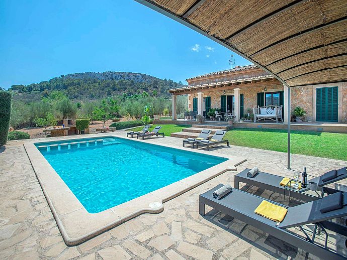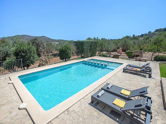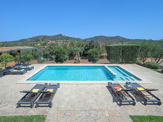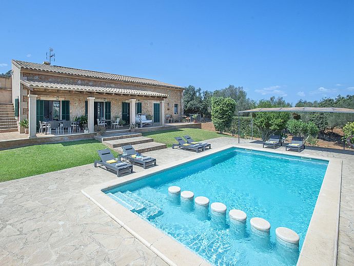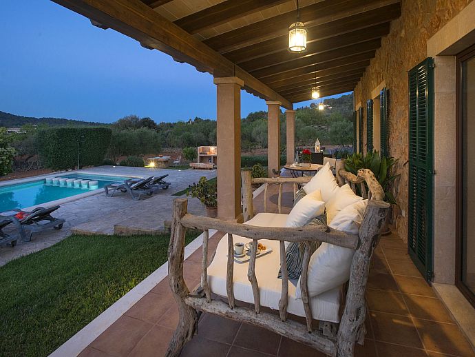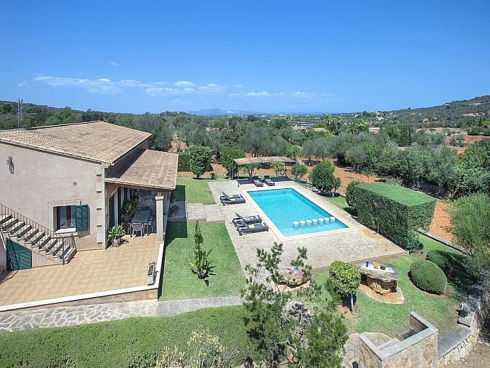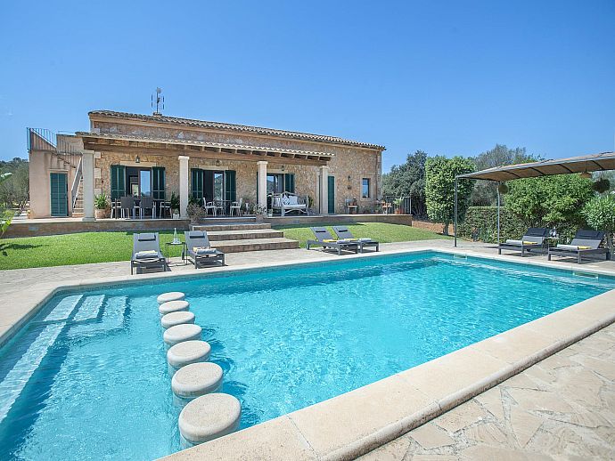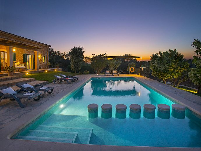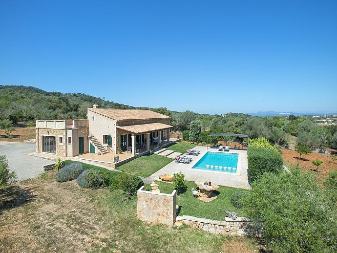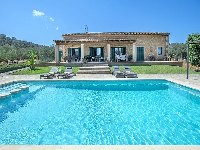 The eye-catching house façade attractively clad in golden Son Garau stone, perfectly complements the gorgeous 360° views across rolling countryside that can be admired from the pool, grounds and terraces.