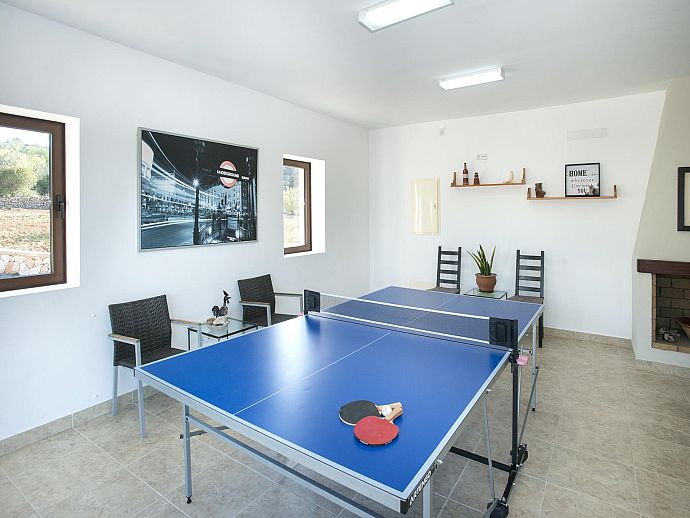 Accommodation: Entrance hall. Living/dining room (TV, DVD, CD, WiFi) with doors to dining terrace. Kitchen (oven, microwave, dishwasher) with doors to dining terrace. Games room (table tennis). Double bedroom (A/C) with en suite shower room, dressing area and doors to dining terrace. Double bedroom (A/C) with en suite shower room and doors to exterior. Twin bedroom (A/C) with doors to exterior. Bathroom.