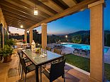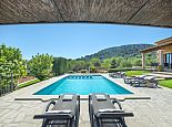 A short unmade track leads to the property grounds of over one acre where, both inside and out, the care invested in design, décor and facilities is obvious. In addition to the lovely views, highlights for us include the wide covered terrace ideal for shaded dining and the striking private pool which has Roman steps onto a long, child-friendly shallow section designated by a row of semi-submerged stone pillars.