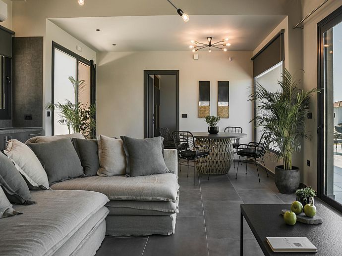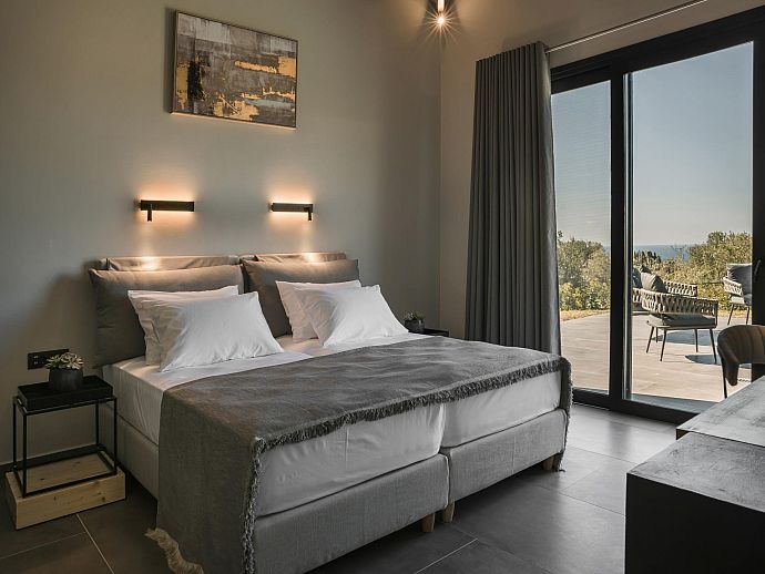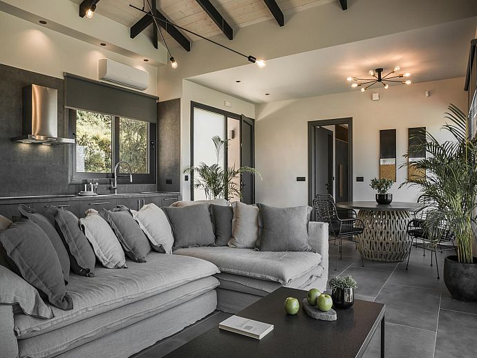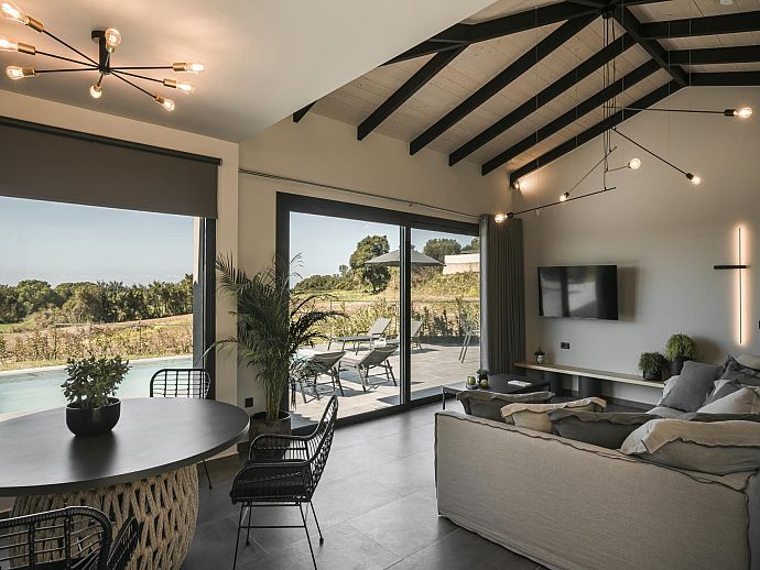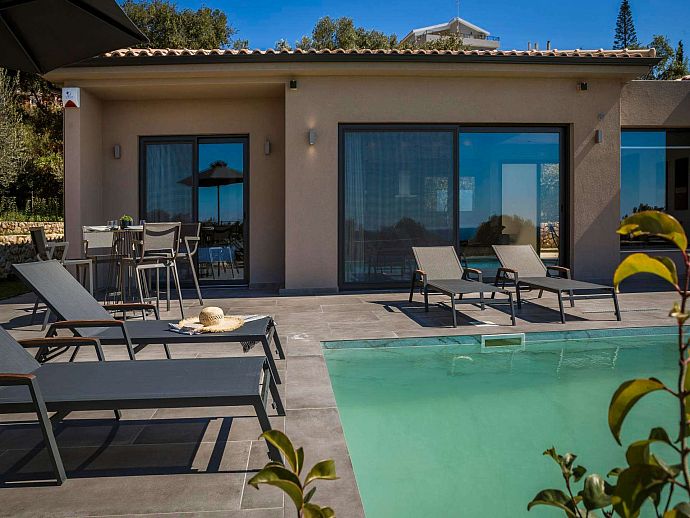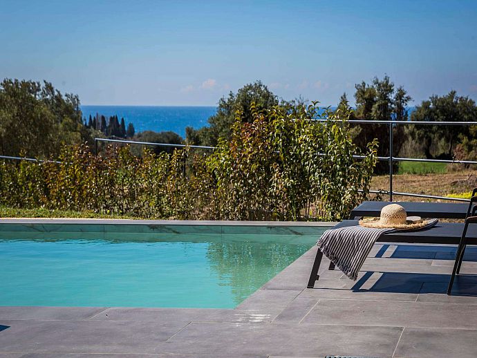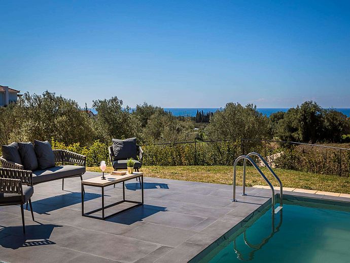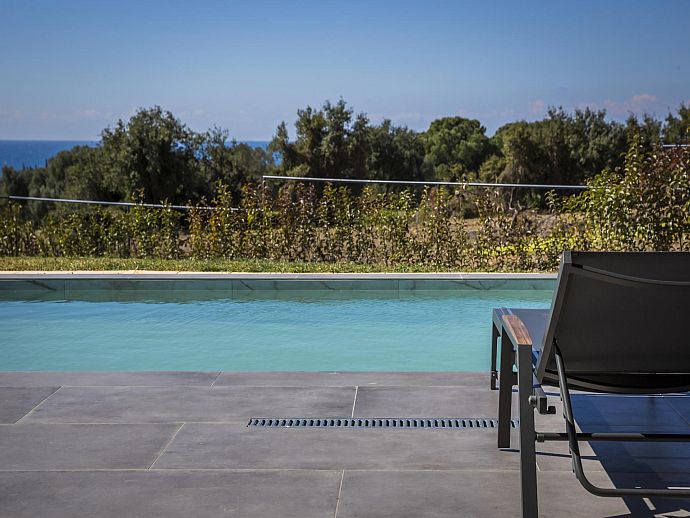 Thoughtfully designed, stylishly furnished and conveniently positioned for access to beaches, good amenities and the island capital Argostoli, Chrysa is a warmly welcoming holiday base. From panoramic windows, the poolside sun terrace and part-lawned grounds guests can enjoy a lovely view over to the aquamarine waters of the Ionian Sea shimmering in the hazy summer heat.