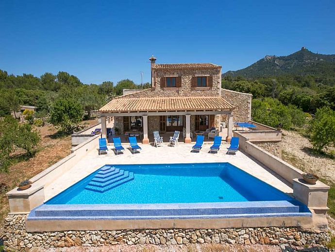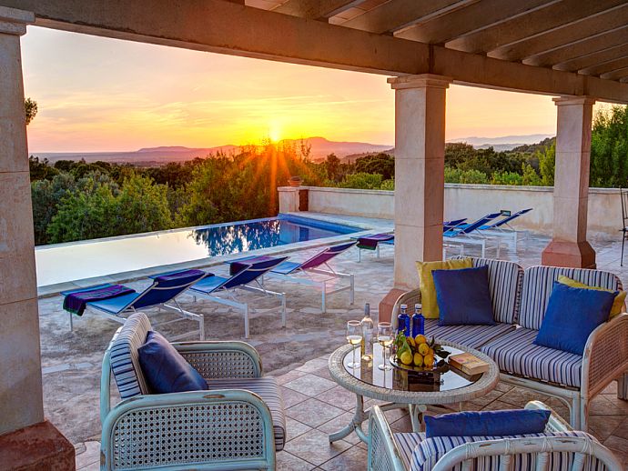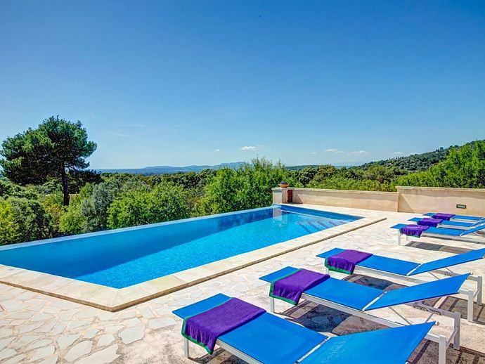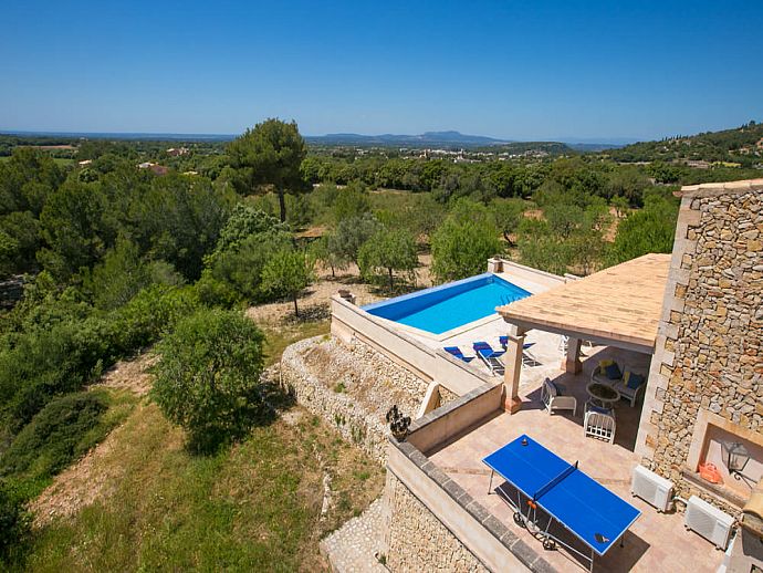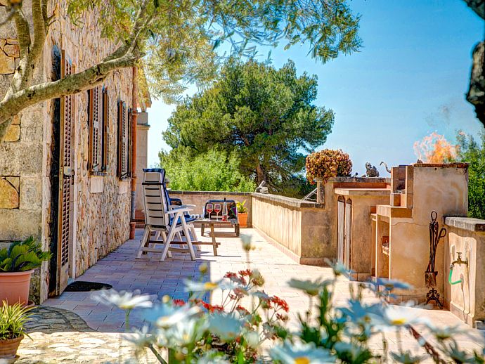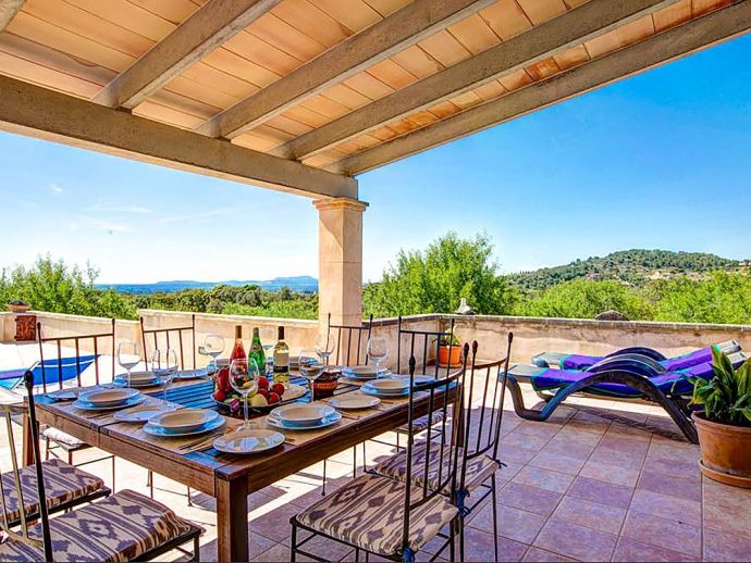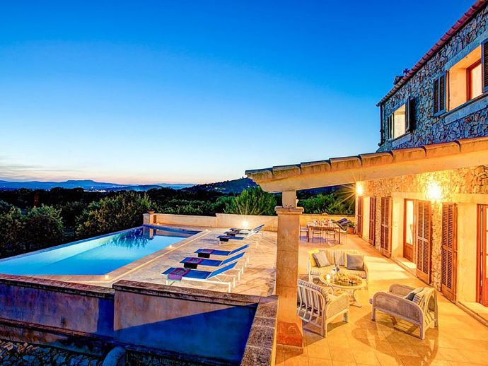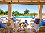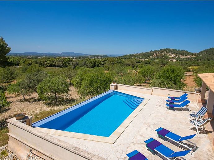 Situated along the scenic country roads just outside (3 km) the market town of Felanitx, nestled on a rise in the land at the end of its own unmade driveway whilst still an easy distance of all amenities including good restaurants and many lovely sandy beaches. Felanitx enjoys a relaxed atmosphere where you can simply stroll around and enjoy the golden stone buildings and hidden squares and the Sunday market is definitely worth a visit. Once you have explored the town you could visit some of the surrounding vineyards as it is Mallorca's second wine-producing area, set in lovely countryside and close by you also have the Sanctuary Sant Salvador and Castle Santuari, both of which are perched on top of hills and have wonderful views of Mallorca and the sea. The authentic fishing port of Portocolom (12 km) is delightful with its Spanish flair, there´s some good restaurants and tapas bars by the waterfront or you can explore the beautiful pine forest hills and browse the quaint streets for pretty souvenirs. You´ll also find many activities here and it is the ideal starting point for a recreational boat trip along the coast.