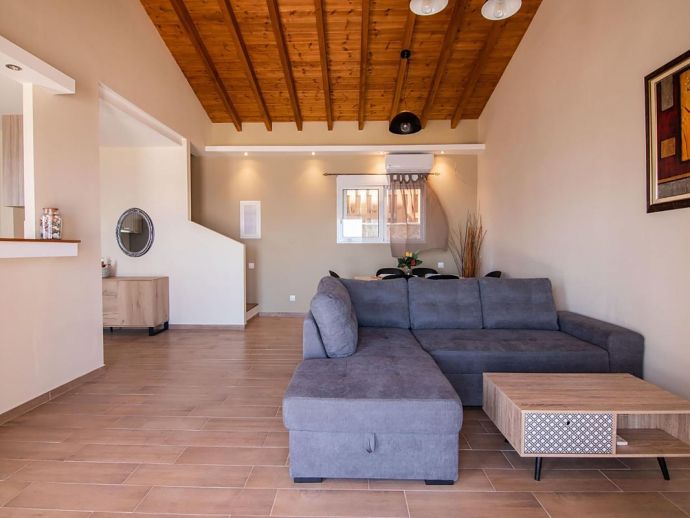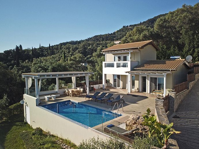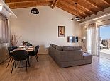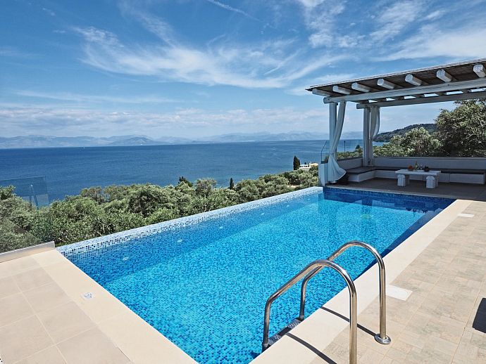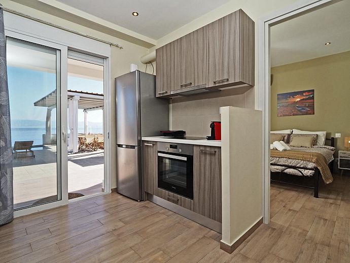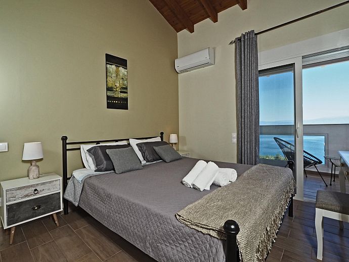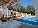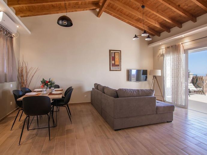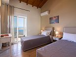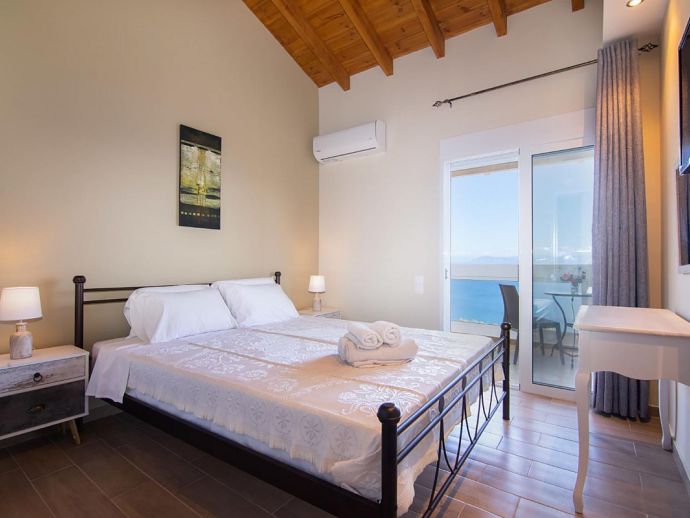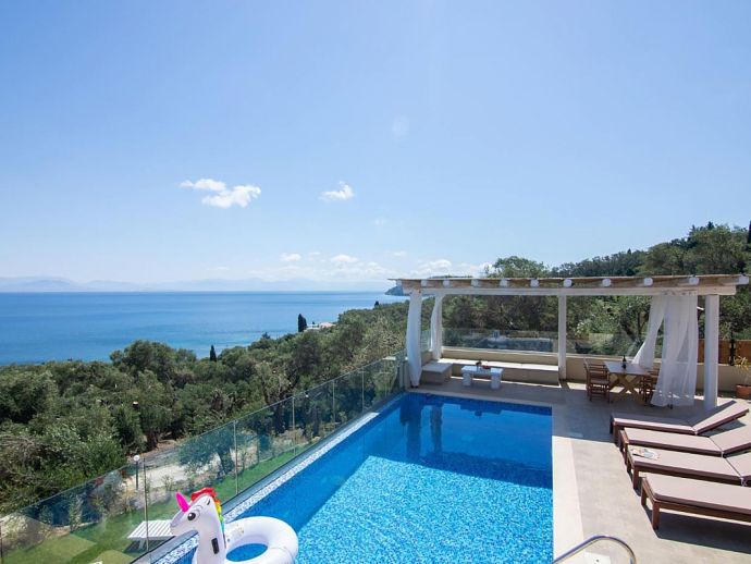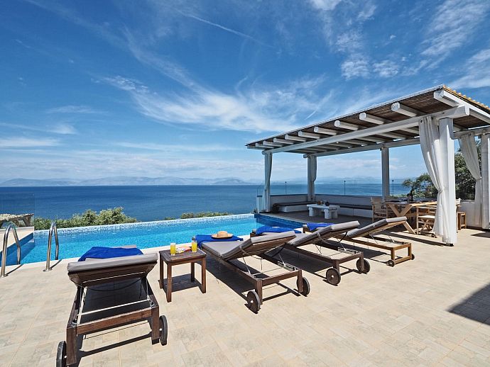 Cosily informal, the unfussy interior has a décor of soft pastel shades, colourful wall prints and Amtico-style flooring. Numerous sliding doors allow an abundance of light to flood in, not only ensuring rooms always feel bright, fresh and very welcoming but also offering a perfect vantage point from which to witness the gorgeous Corfu sunrises (and without even having to leave bed if you so choose!).